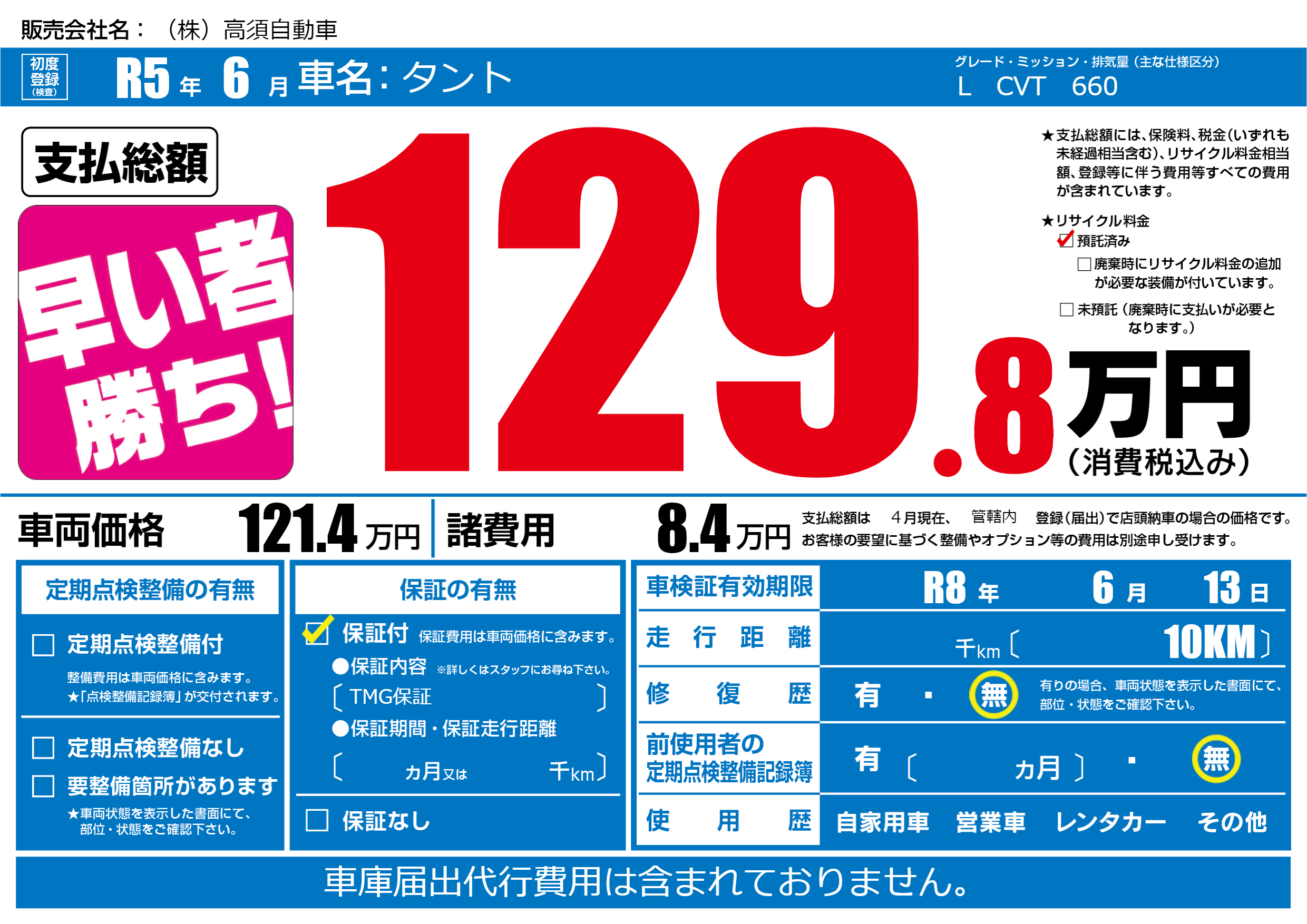 保証付き 保証内容(TMG保証) ---ヶ月または()千kmまで |