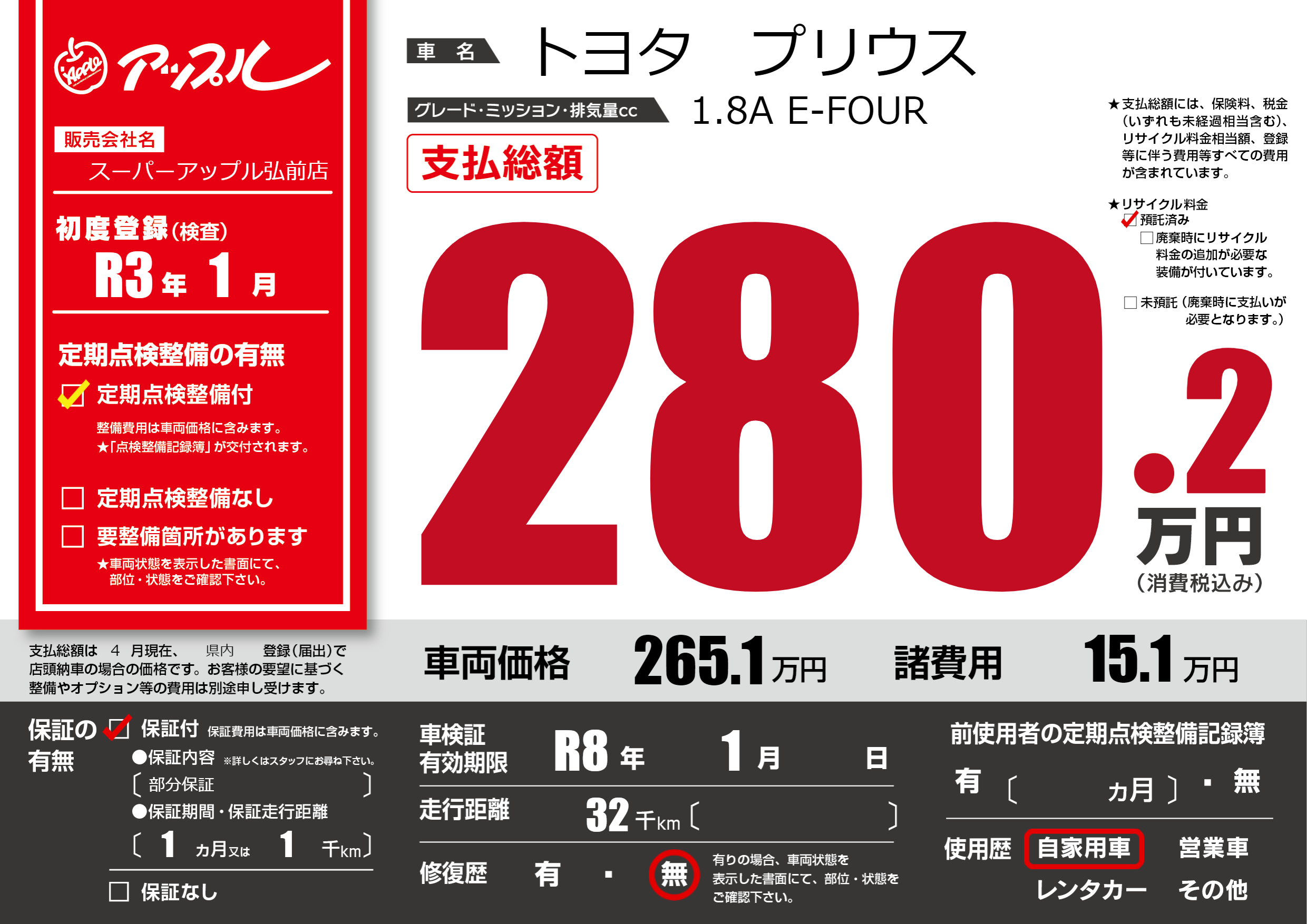 | 車名 | トヨタ プリウス | グレード ミッション 排気量 |