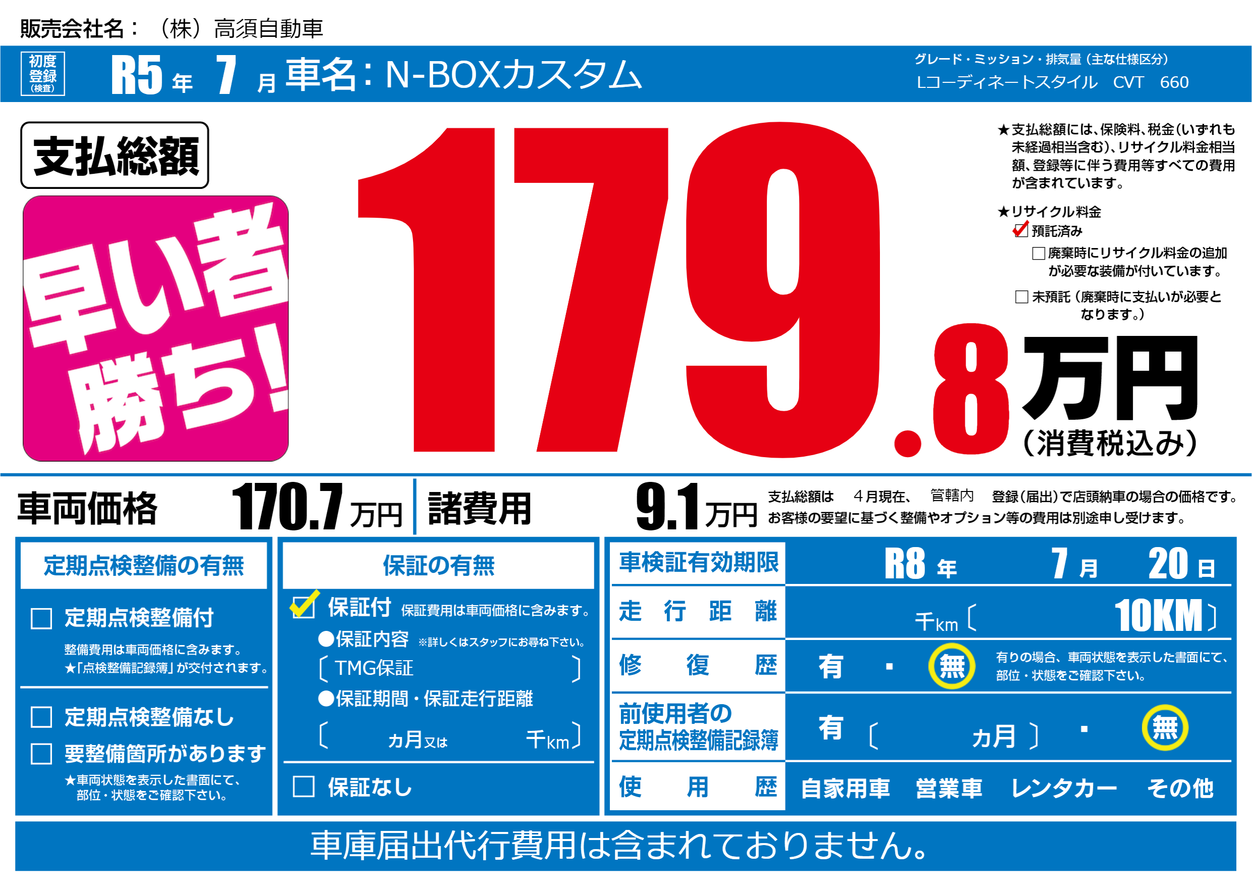 | 車名 | N-BOXカスタム | グレード ミッション 排気量 |
