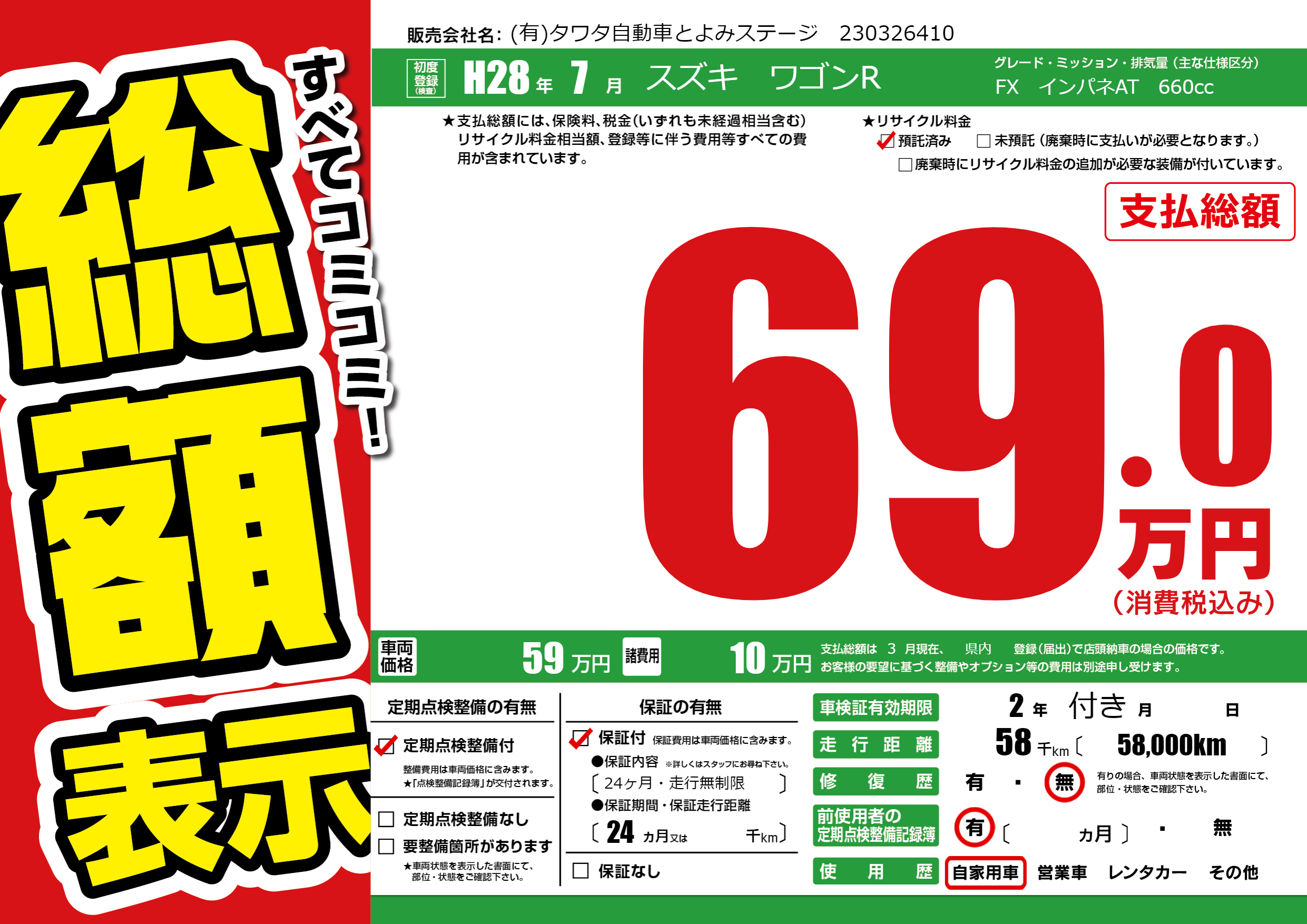 | 車名 | スズキ ワゴンR | グレード ミッション 排気量 |