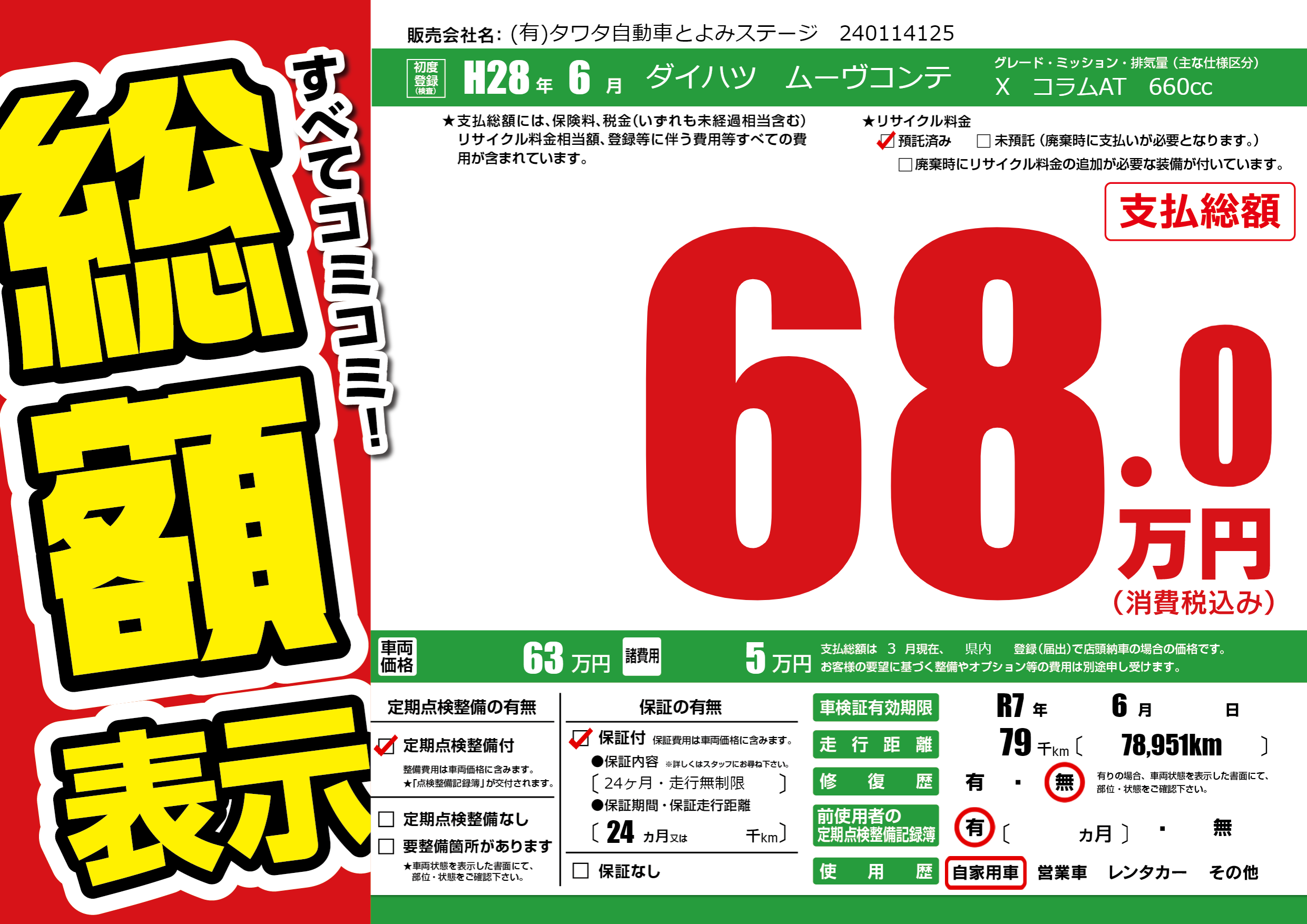 | 車検制限 | R7年 6月 - 日 | ||