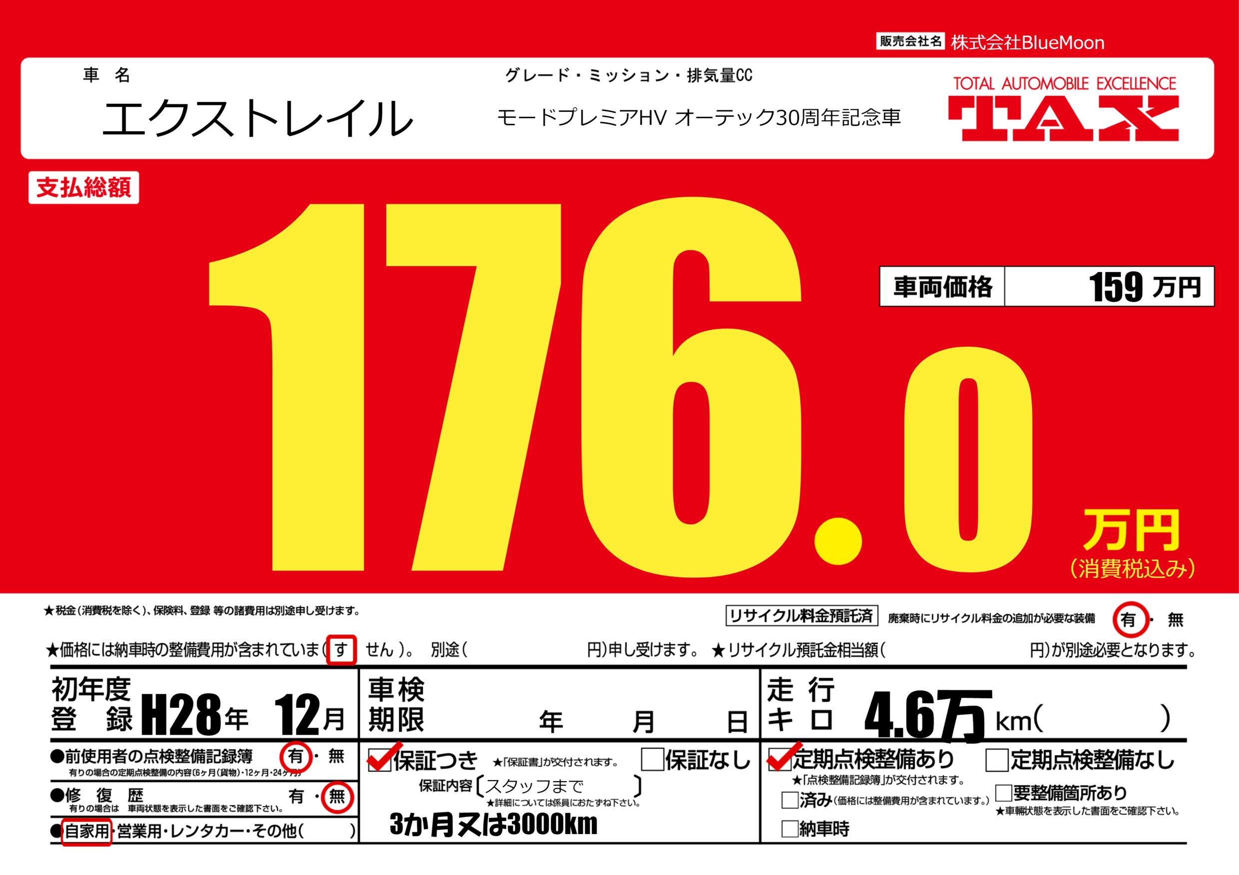 | 車名 | エクストレイル | グレード ミッション 排気量 |