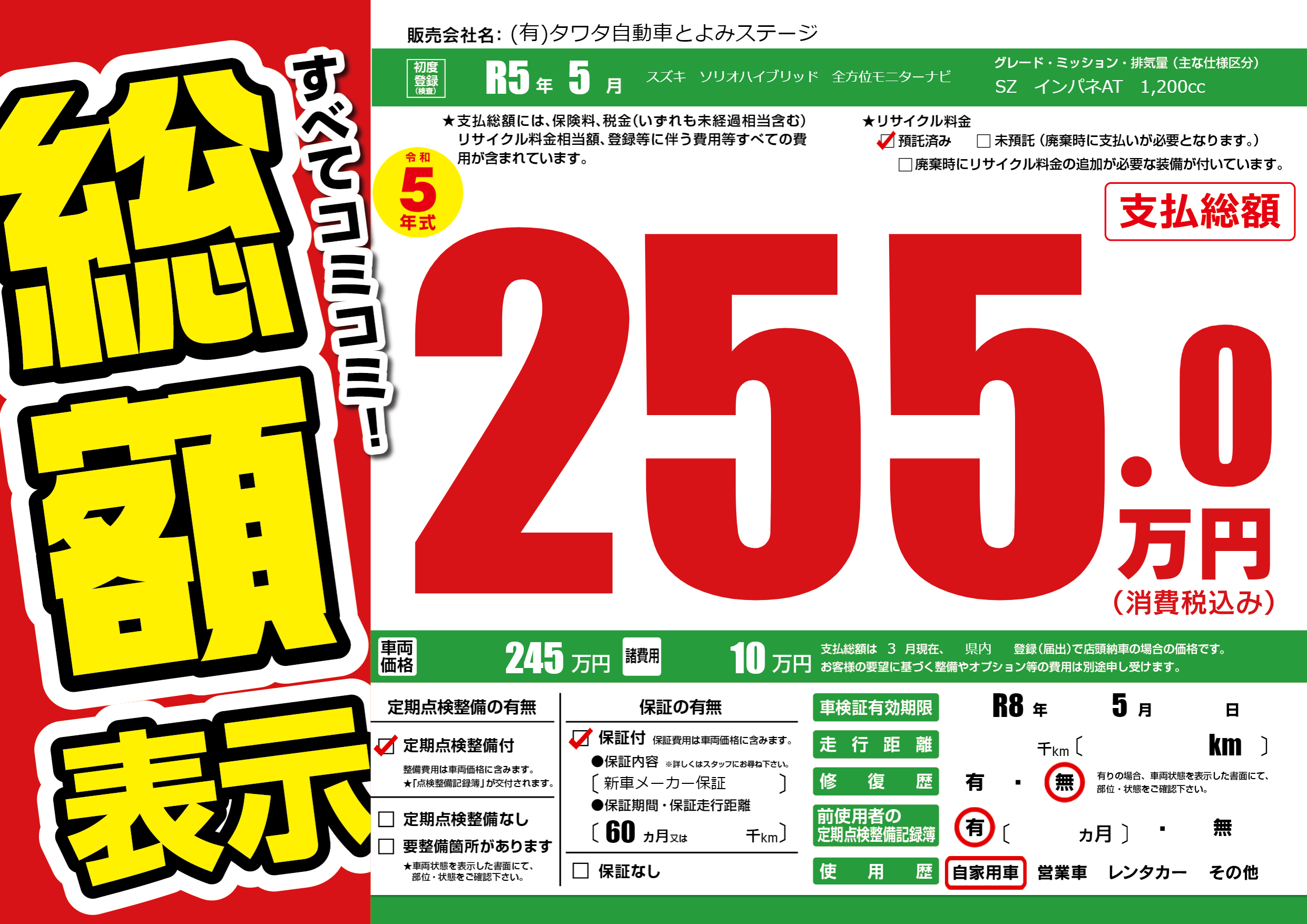 なし | 車検制限 | R8年5月---月 |