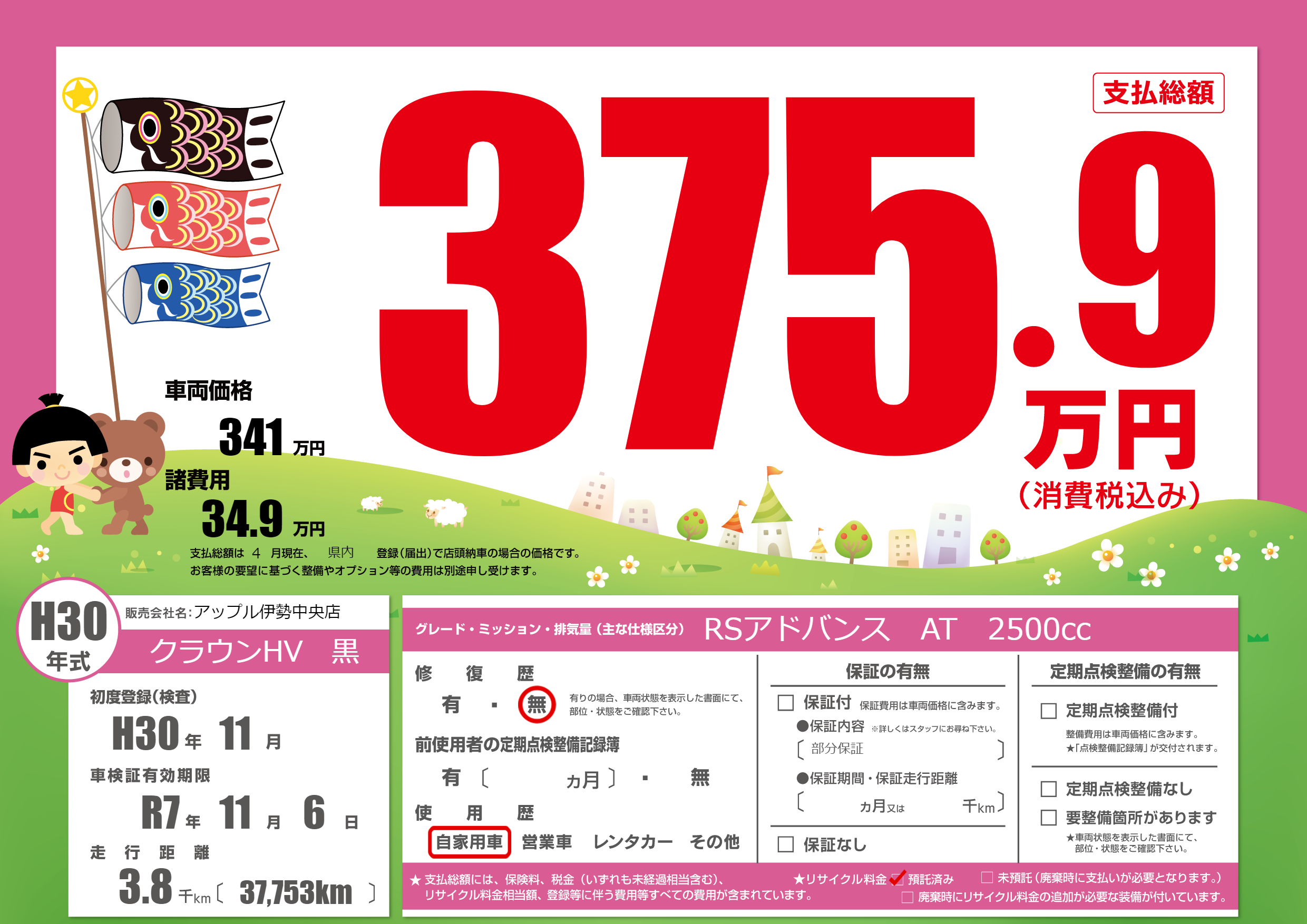 | 車名 | クラウンHV 黒 | グレード ミッション 排気量 |