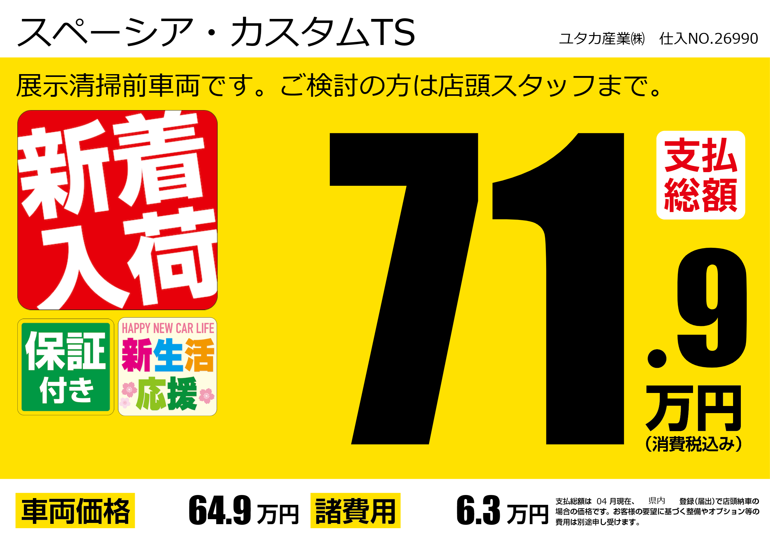 | 車名 | スペーシア・カスタムTS | グレード ミッション 排気量 |