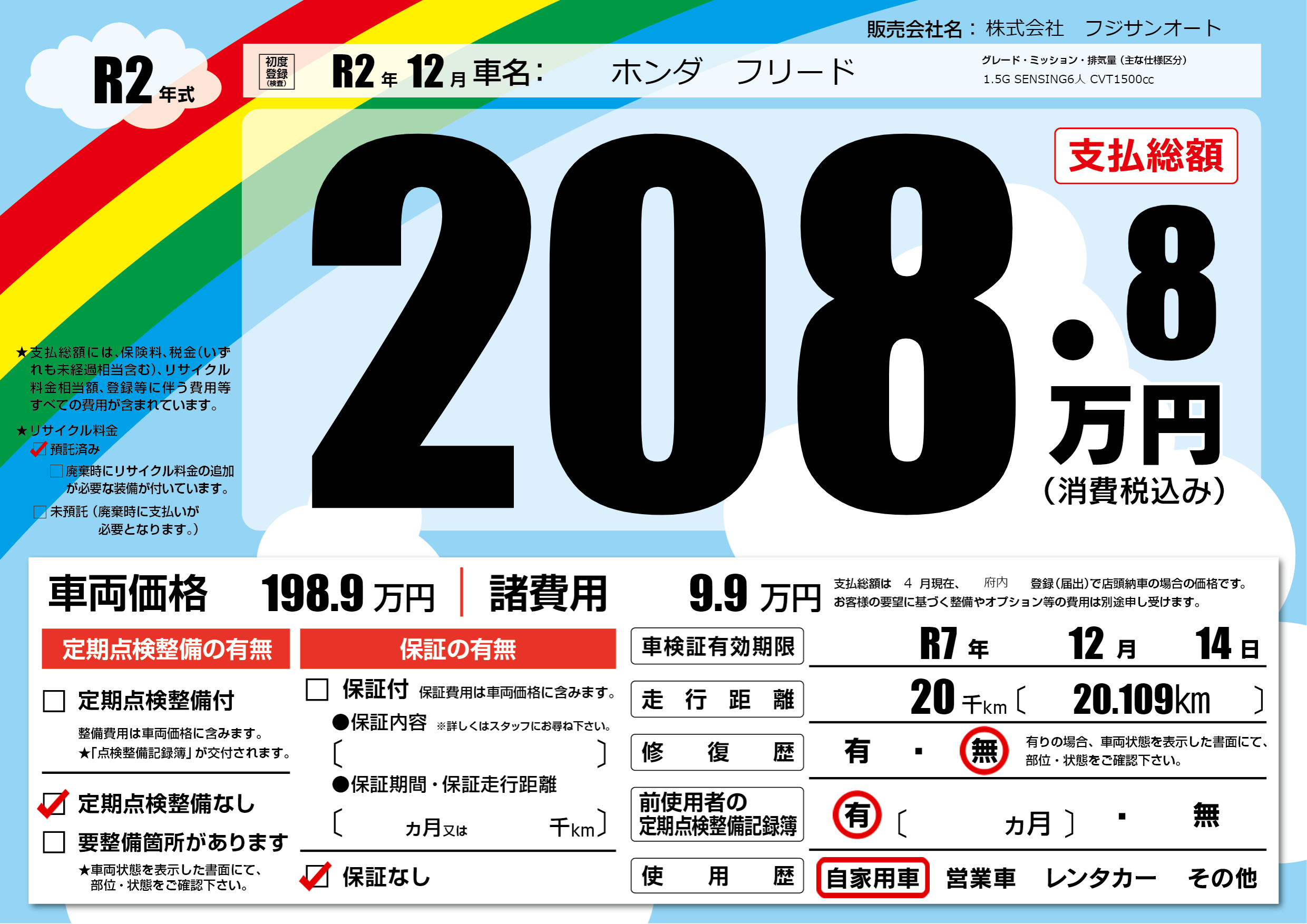 | 走行キロ | 2万km | 初年度登録 | R2年12月 |