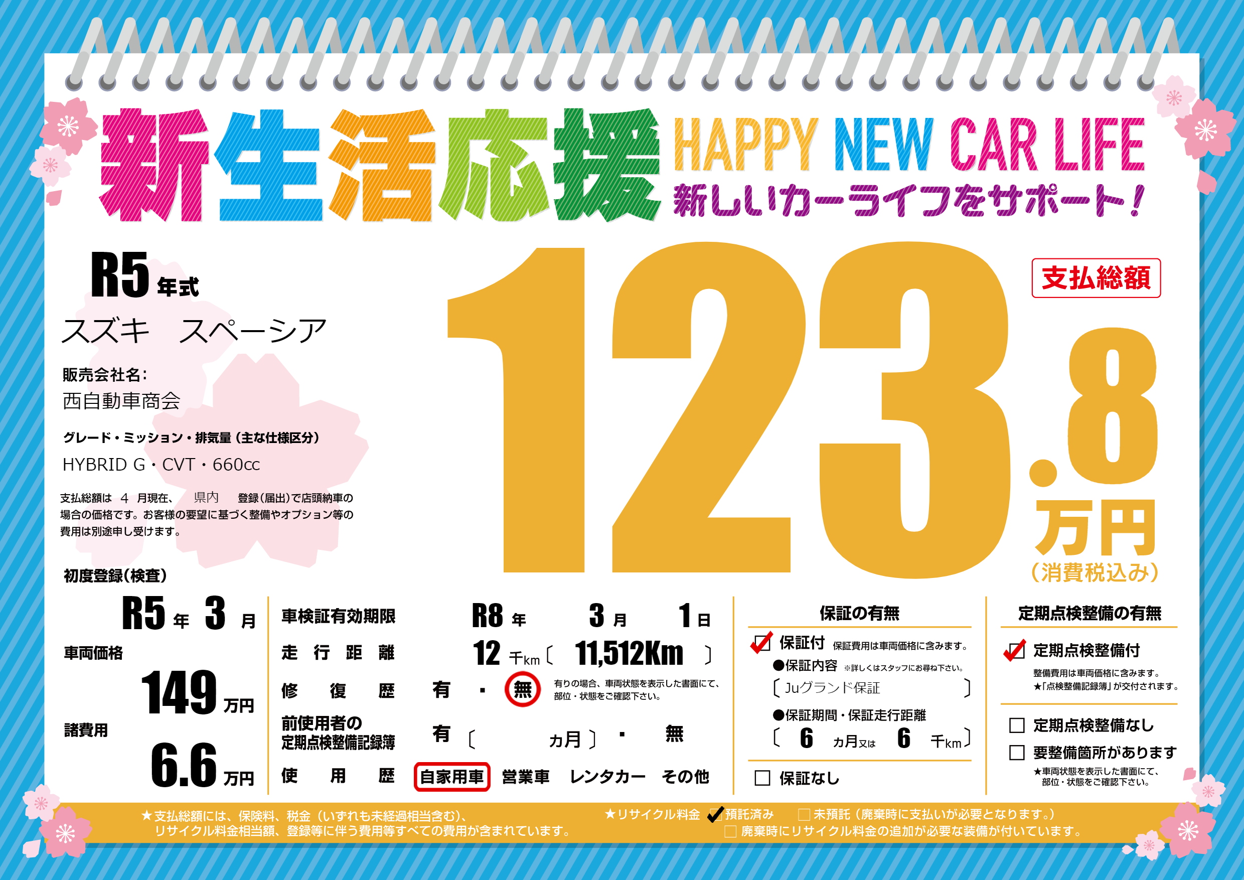 | 走行キロ | 1.2万km | 初年度登録 | R5年3月 |