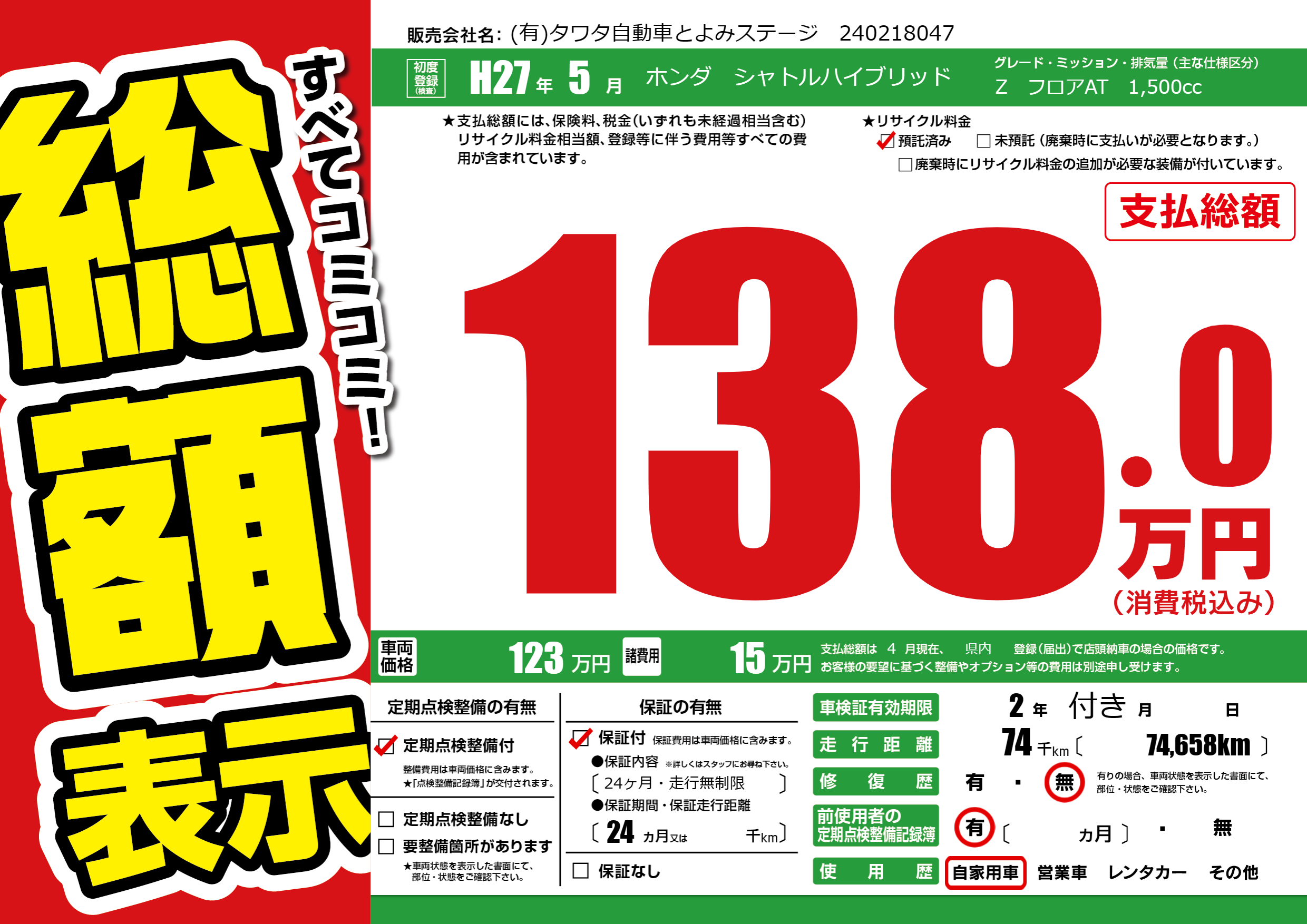 | 定期点検整備 | 定期点検整備あり | ||