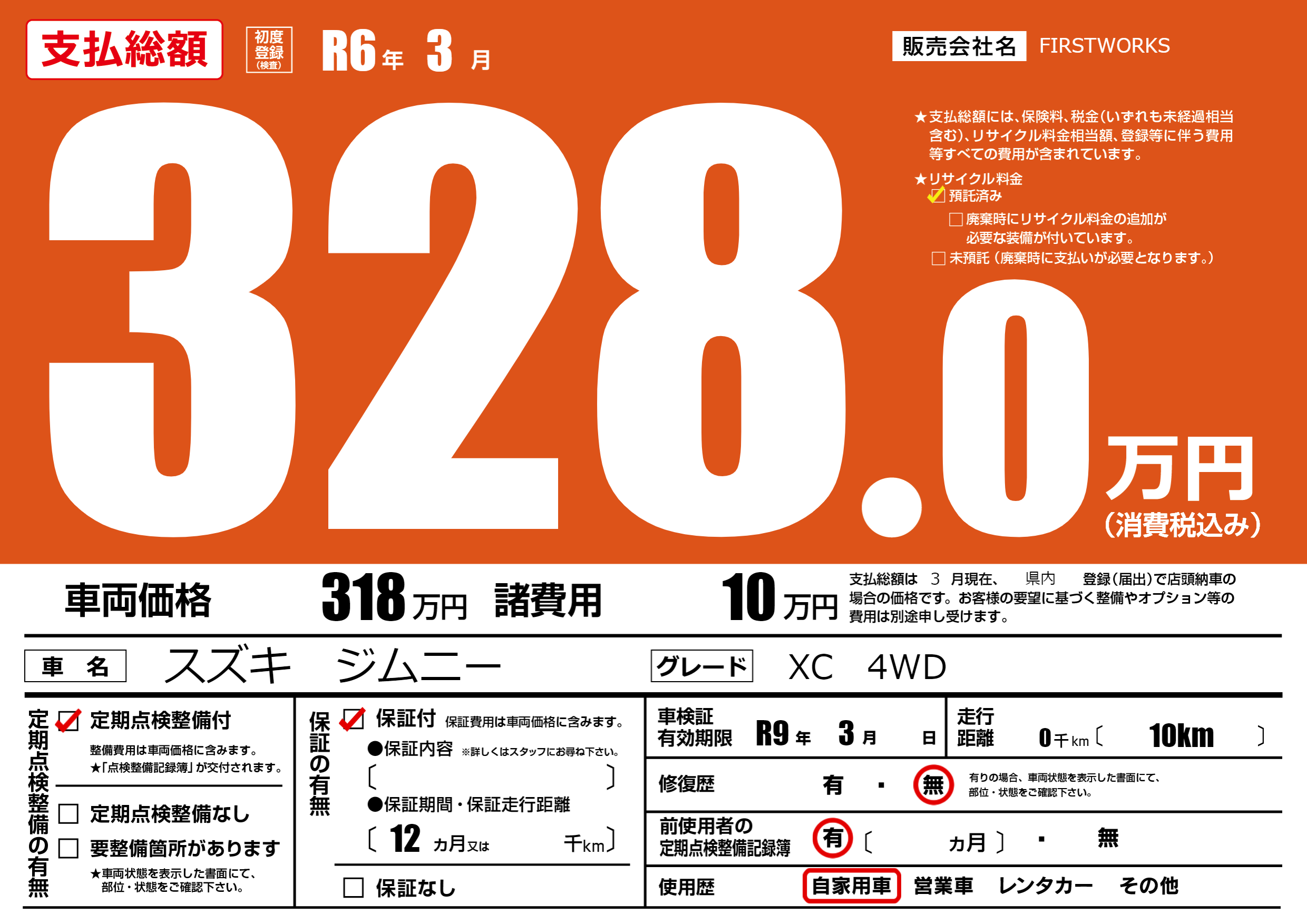| 車名 | スズキ ジムニー | グレード ミッション 排気量 |