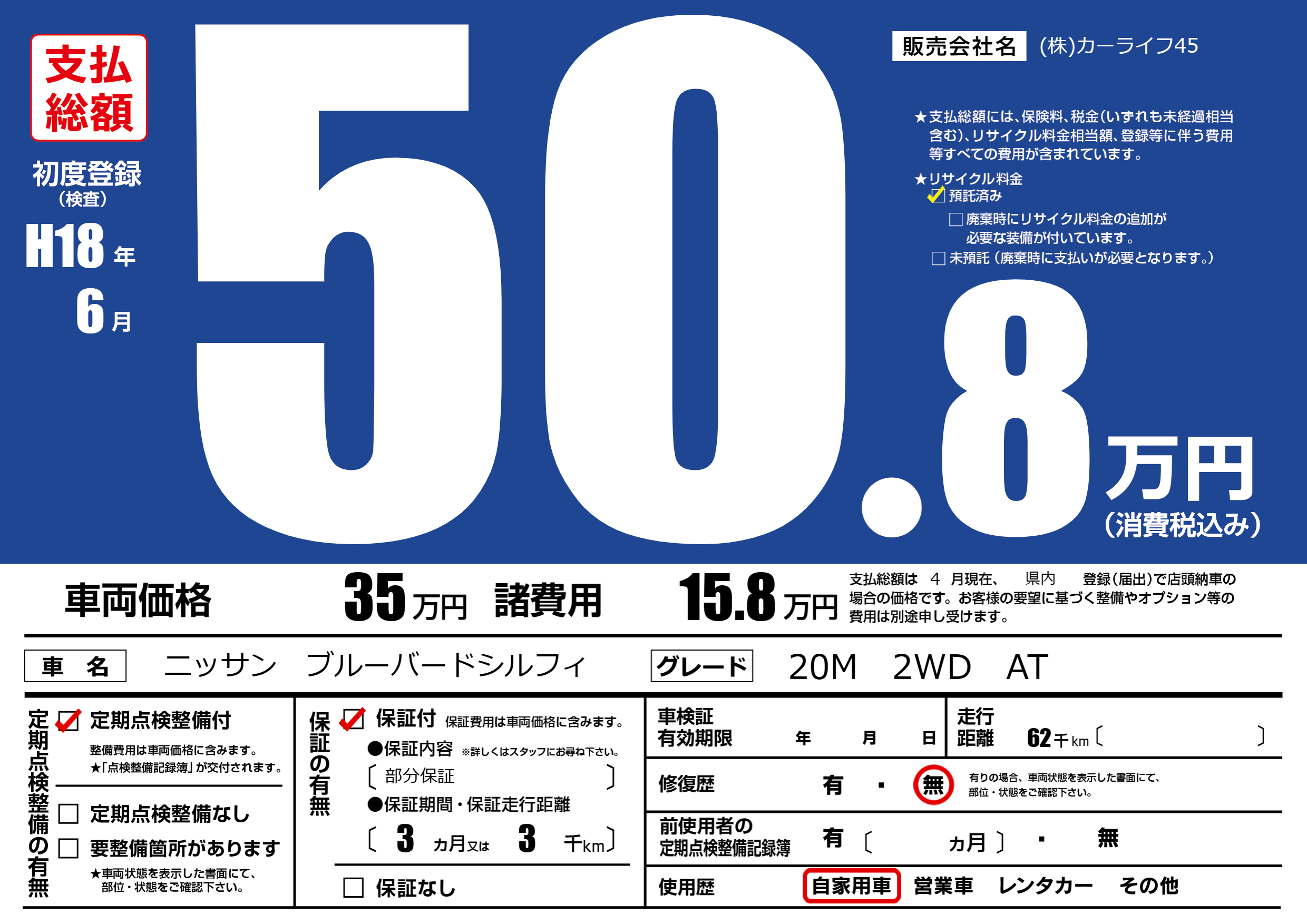 | 車検制限 | - 年 - 月 - 日 | ||