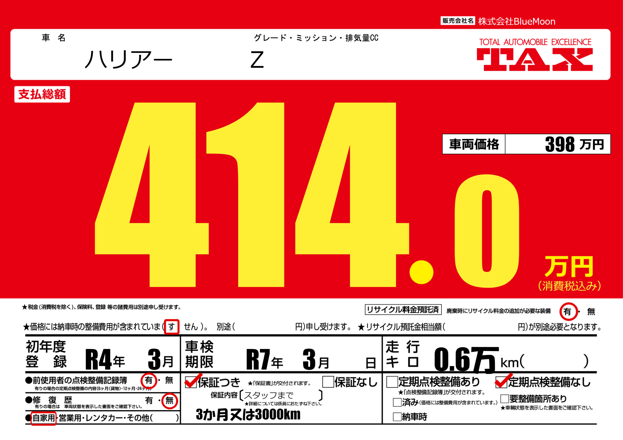 | 走行キロ | - | 初年度登録 | R4年3月 |