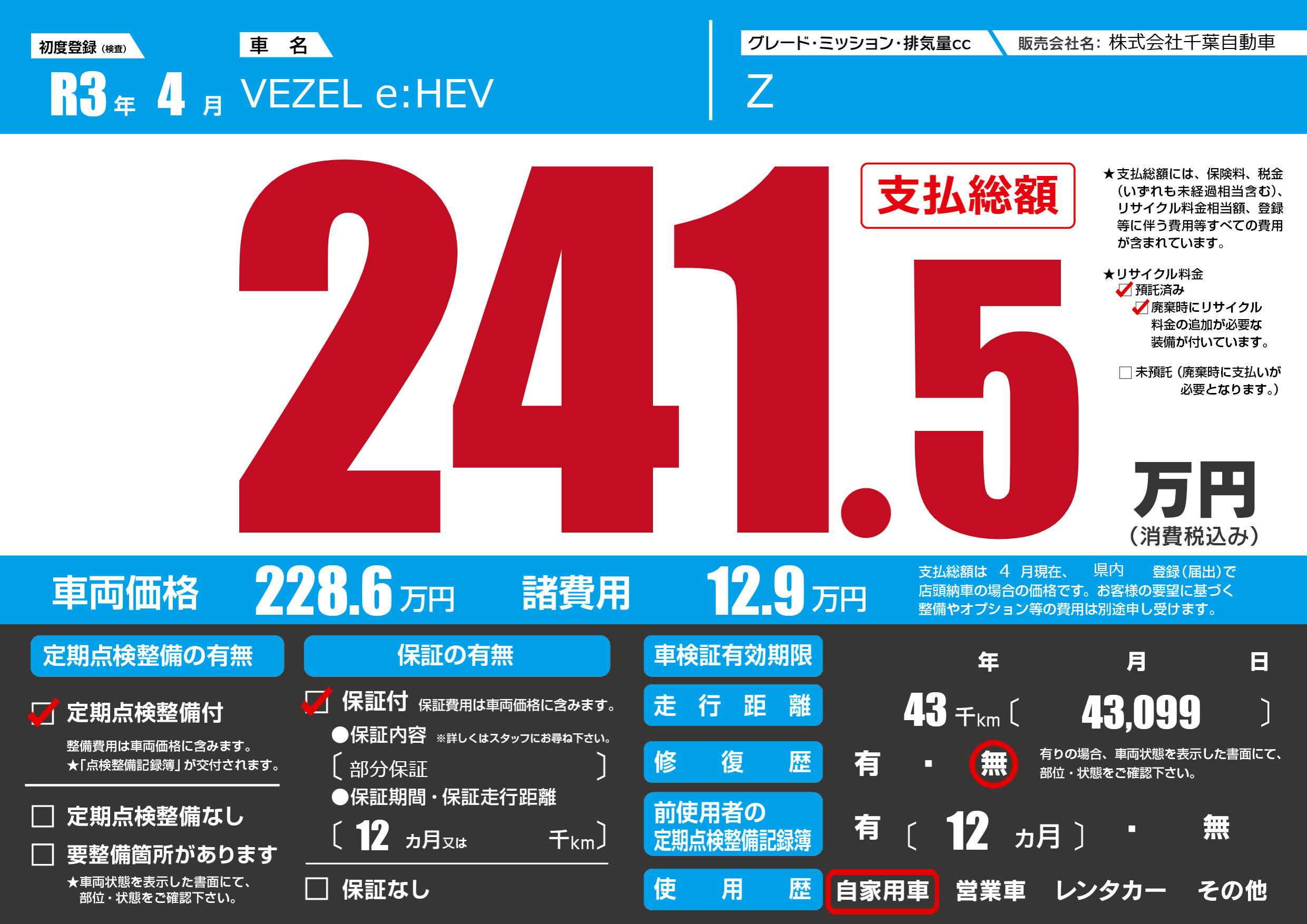 | 定期点検整備 | 定期点検整備あり | ||