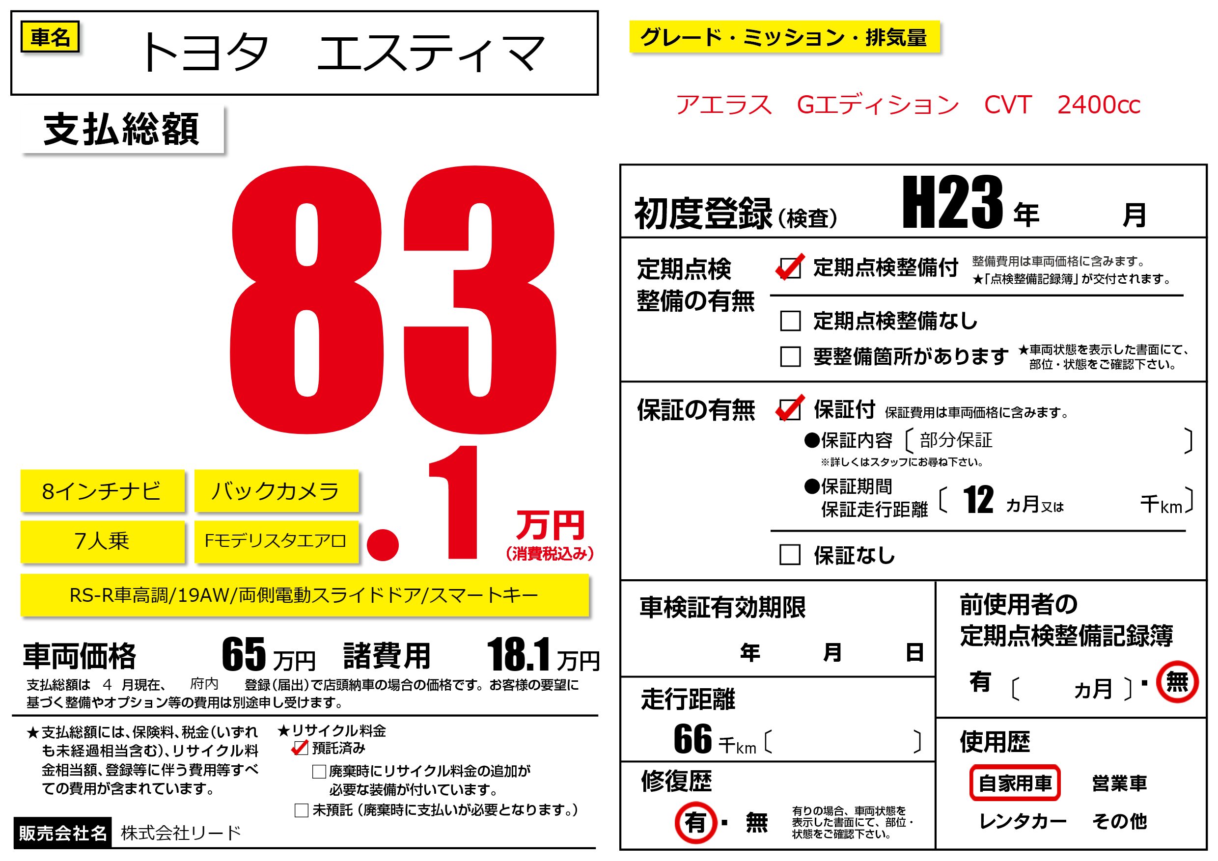 | 初年度登録 | H23年 | ||