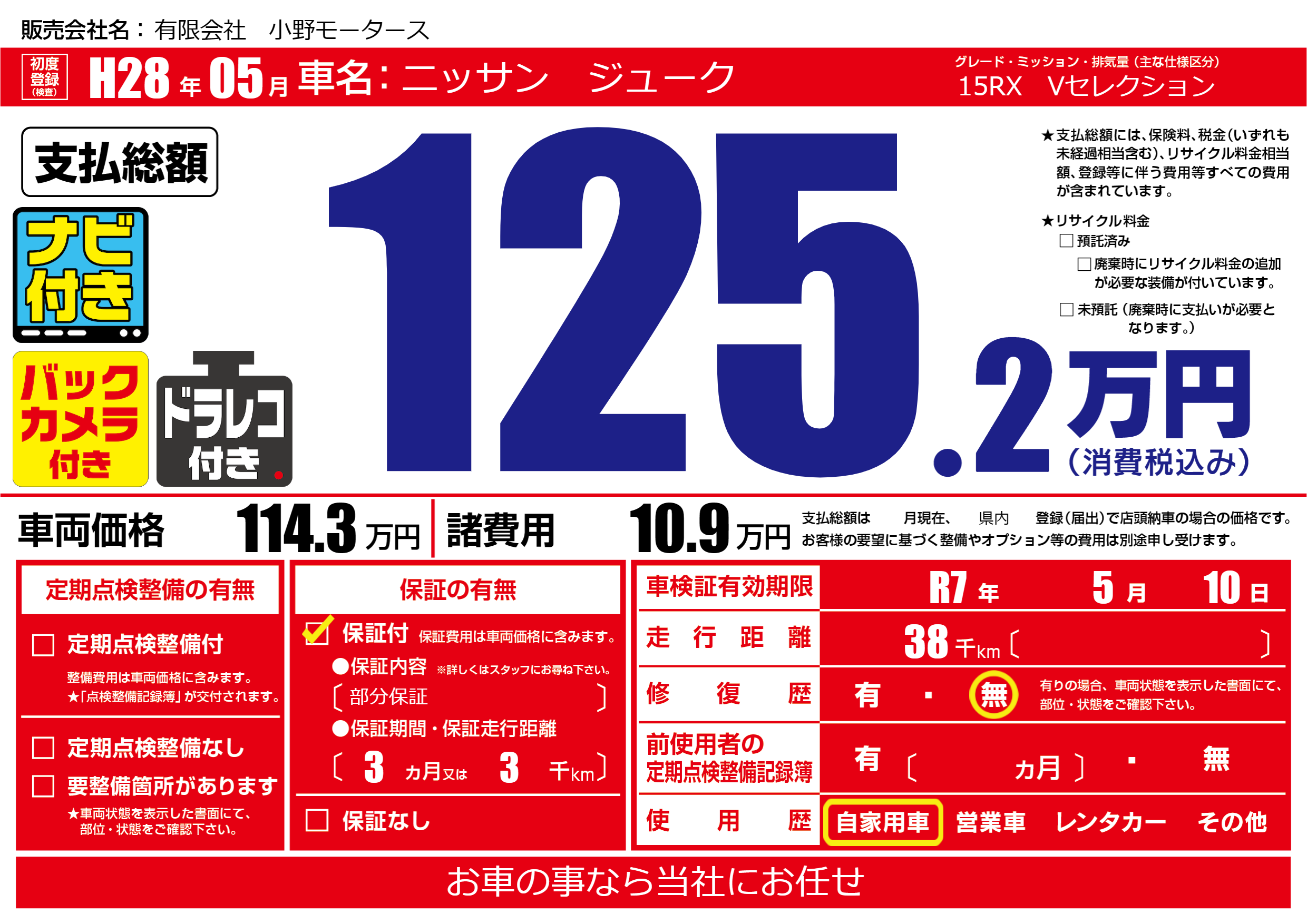 なし | 車検制限 | R7年5月10月 |