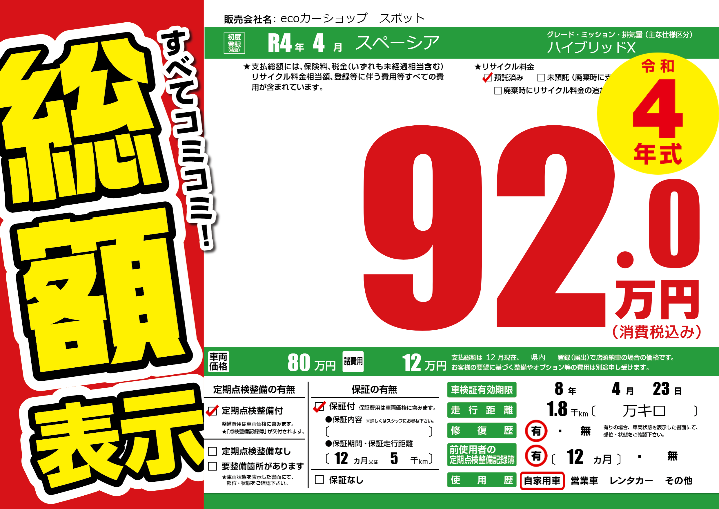 なし | 車検制限 | 8年4月23月 |