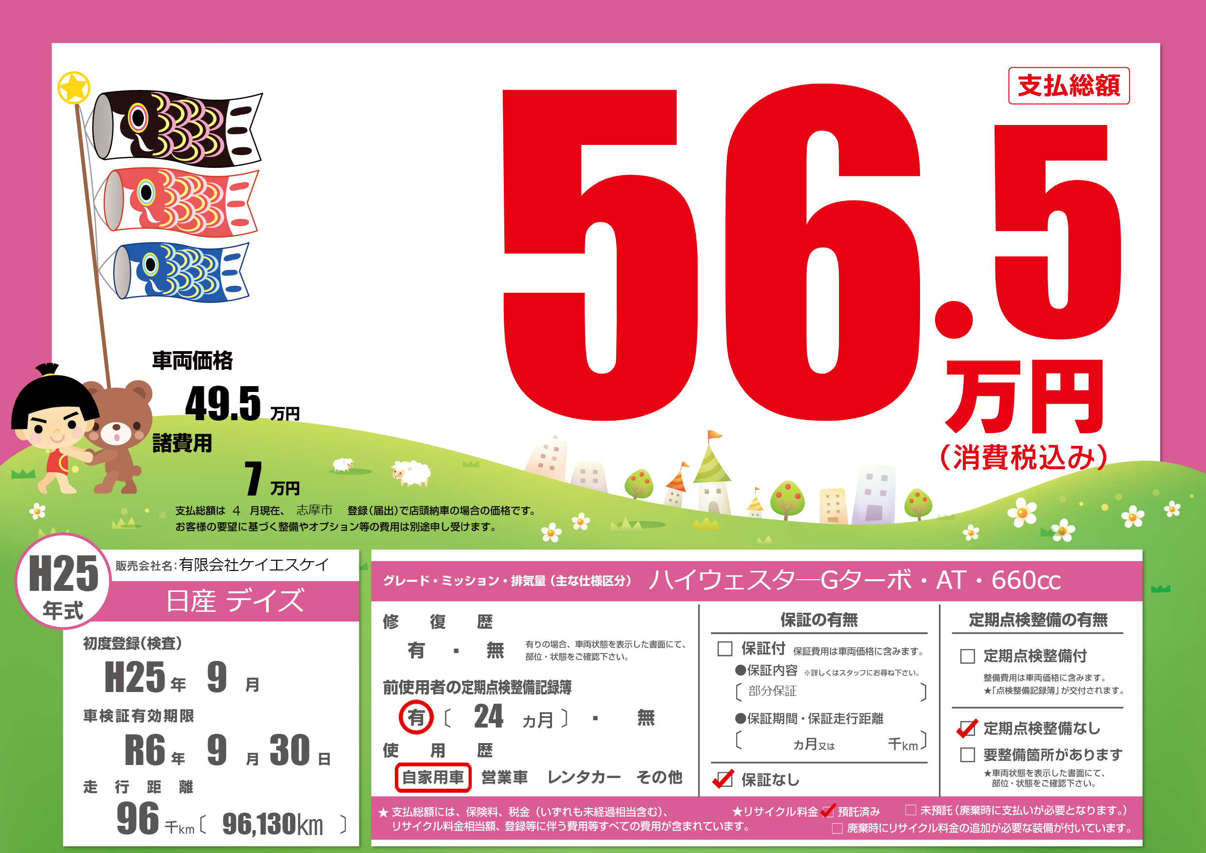 | 走行キロ | 9.6万km | 初年度登録 | H25年9月 |