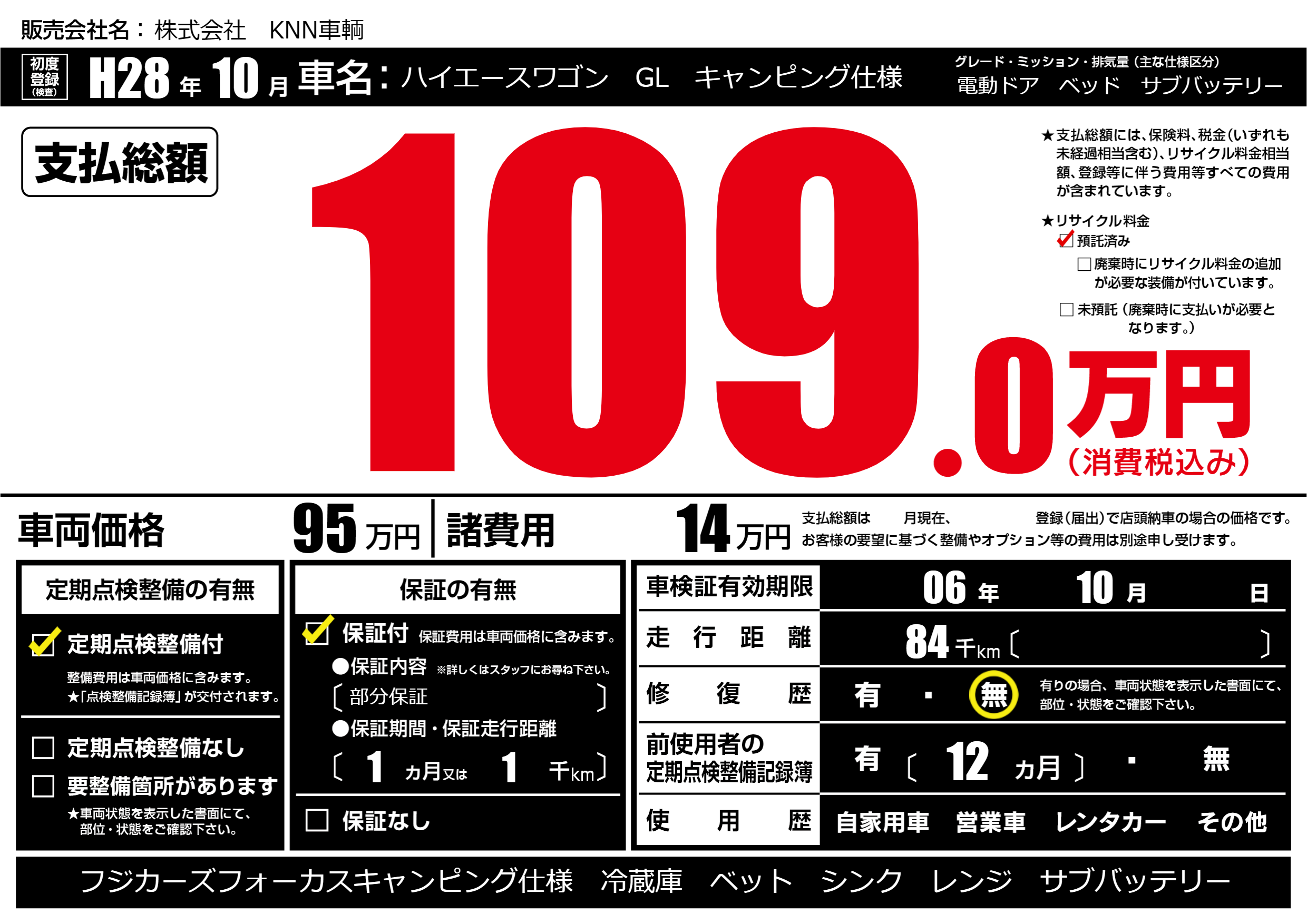 | 定期点検整備 | 定期点検整備あり | ||