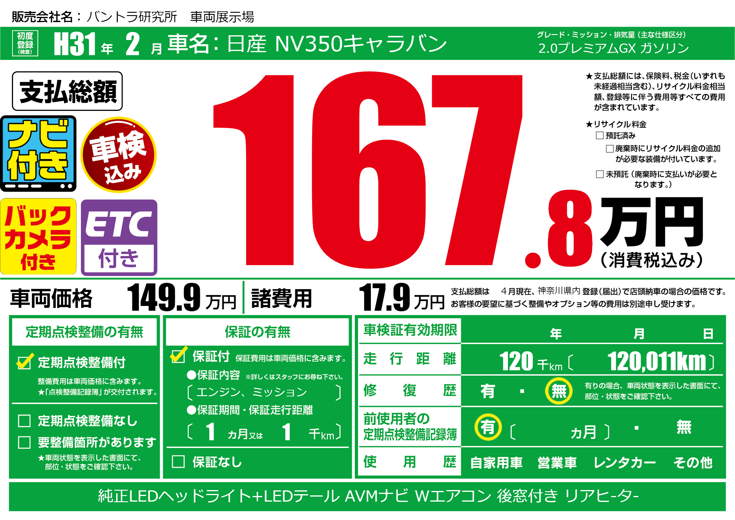 | 定期点検整備 | 定期点検整備あり | ||