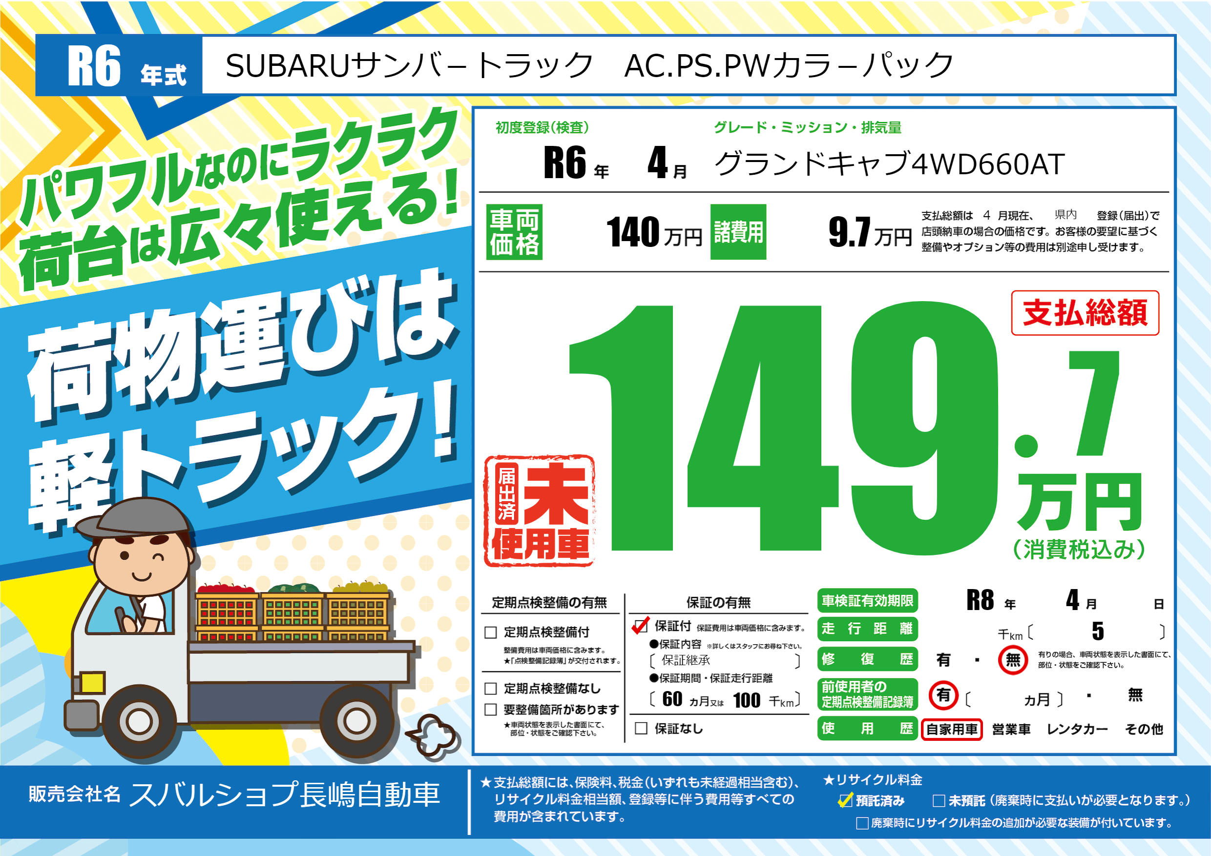 SUBARUサンバ-トラック AC.PS.PWカラ-パック