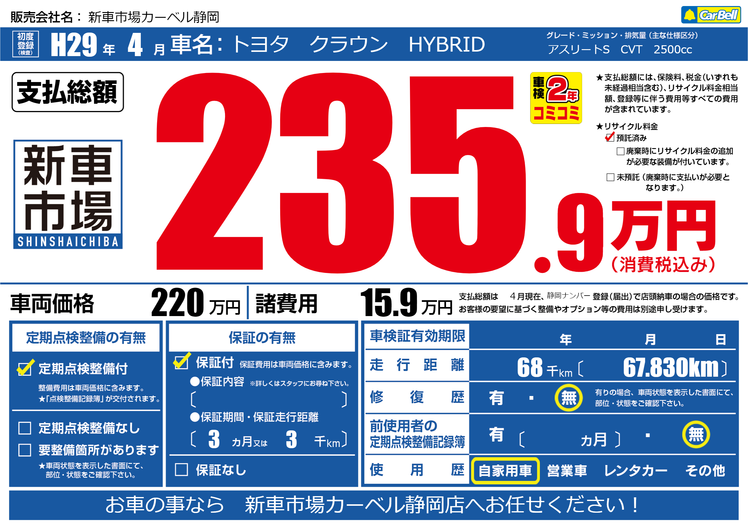 | リサイクル料金 預託済 |