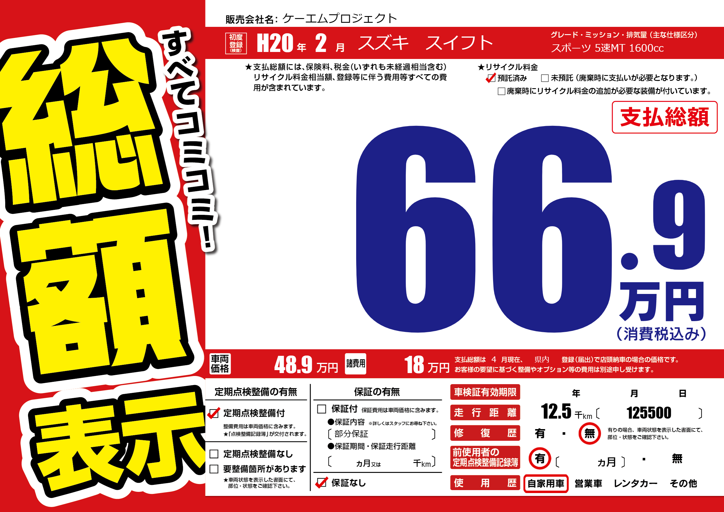 | 定期点検整備 | 定期点検整備あり | ||