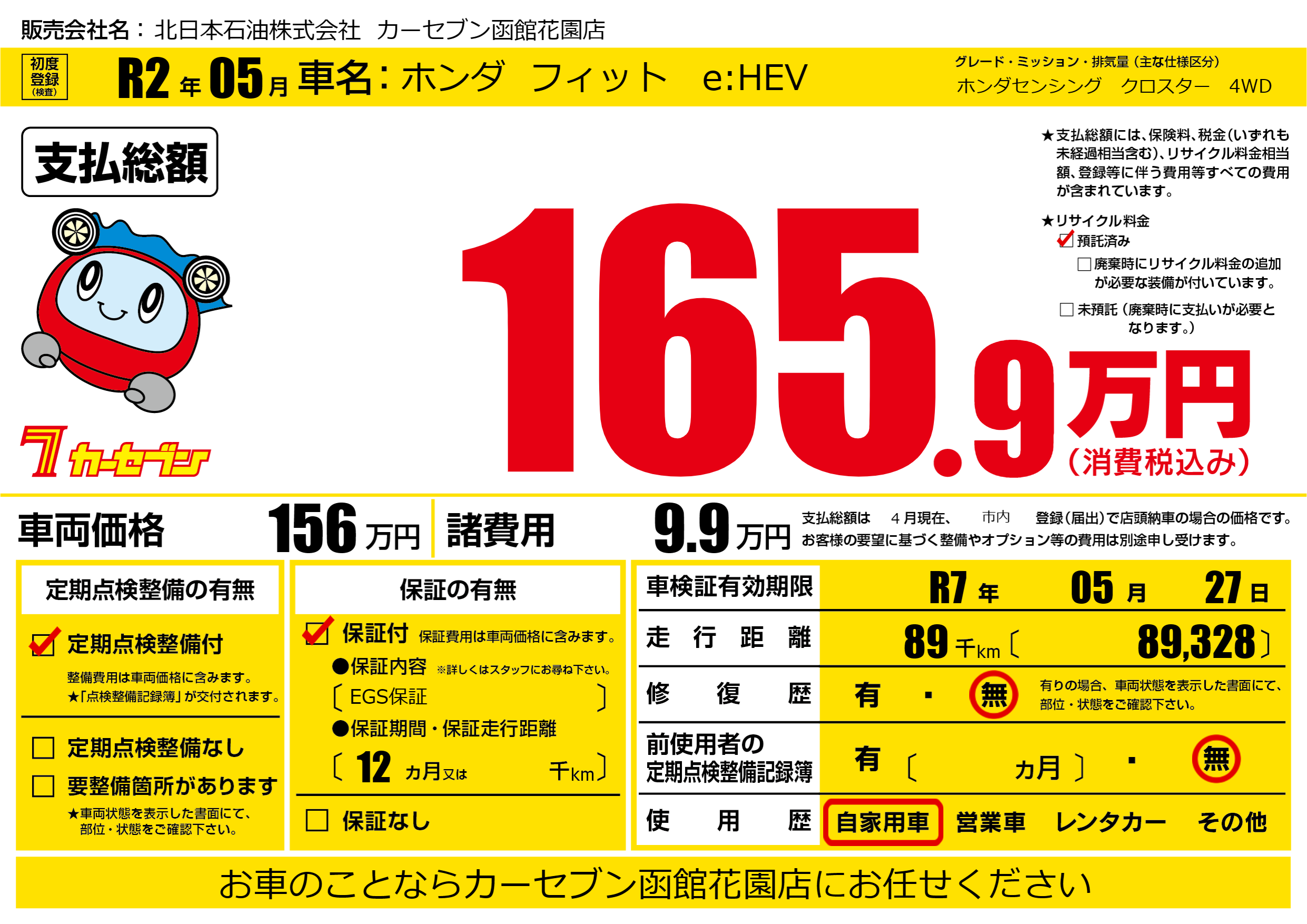 | 車名 | ホンダ フィット e:HEV | グレード ミッション 排気量 |