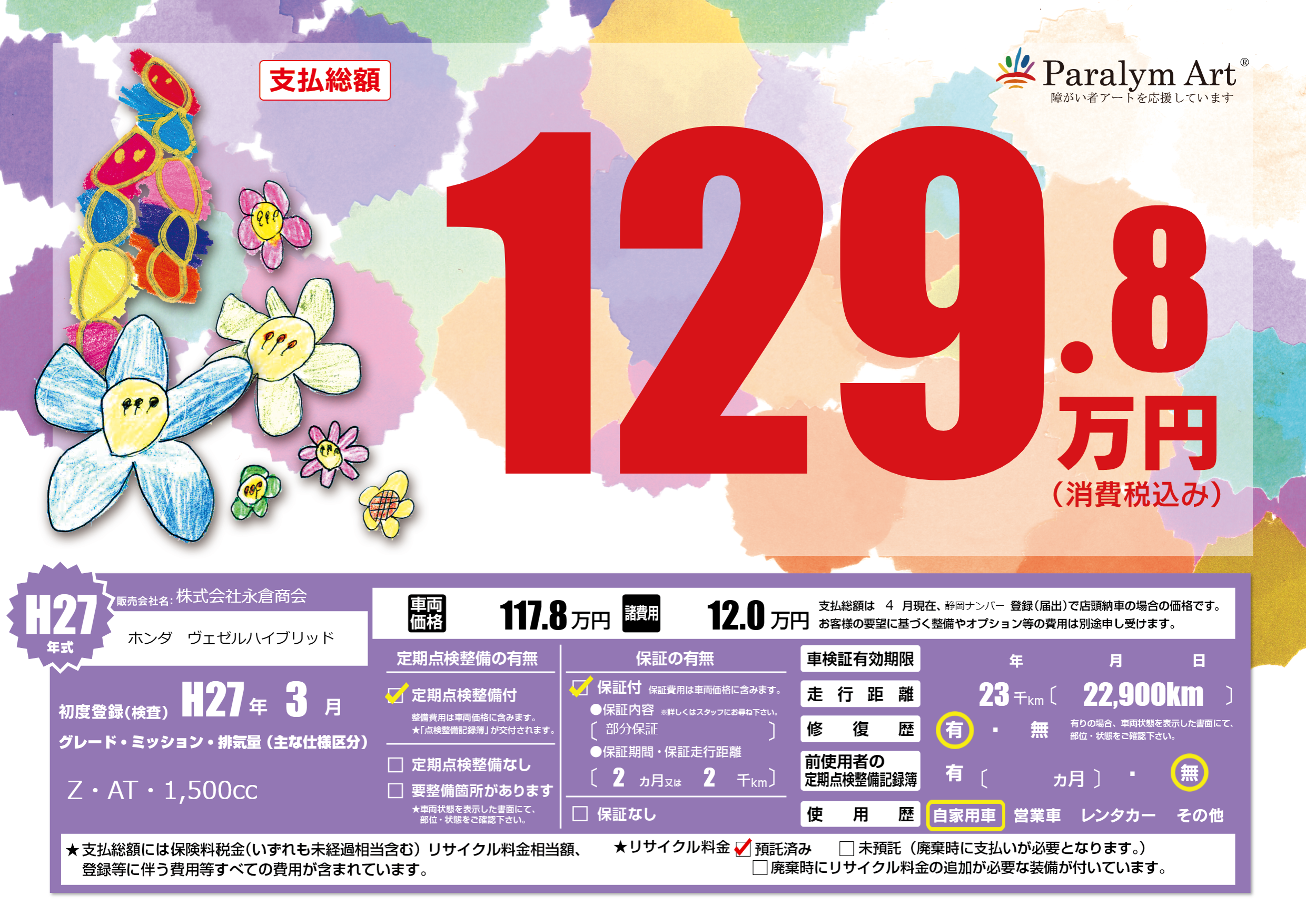 | 車名 | ホンダ ヴェゼルハイブリッド | グレード ミッション 排気量 |