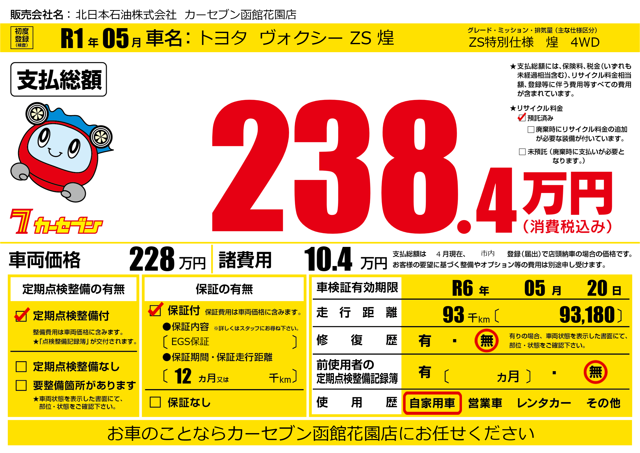 | 車名 | トヨタ ヴォクシー ZS 煌 | グレード ミッション 排気量 |