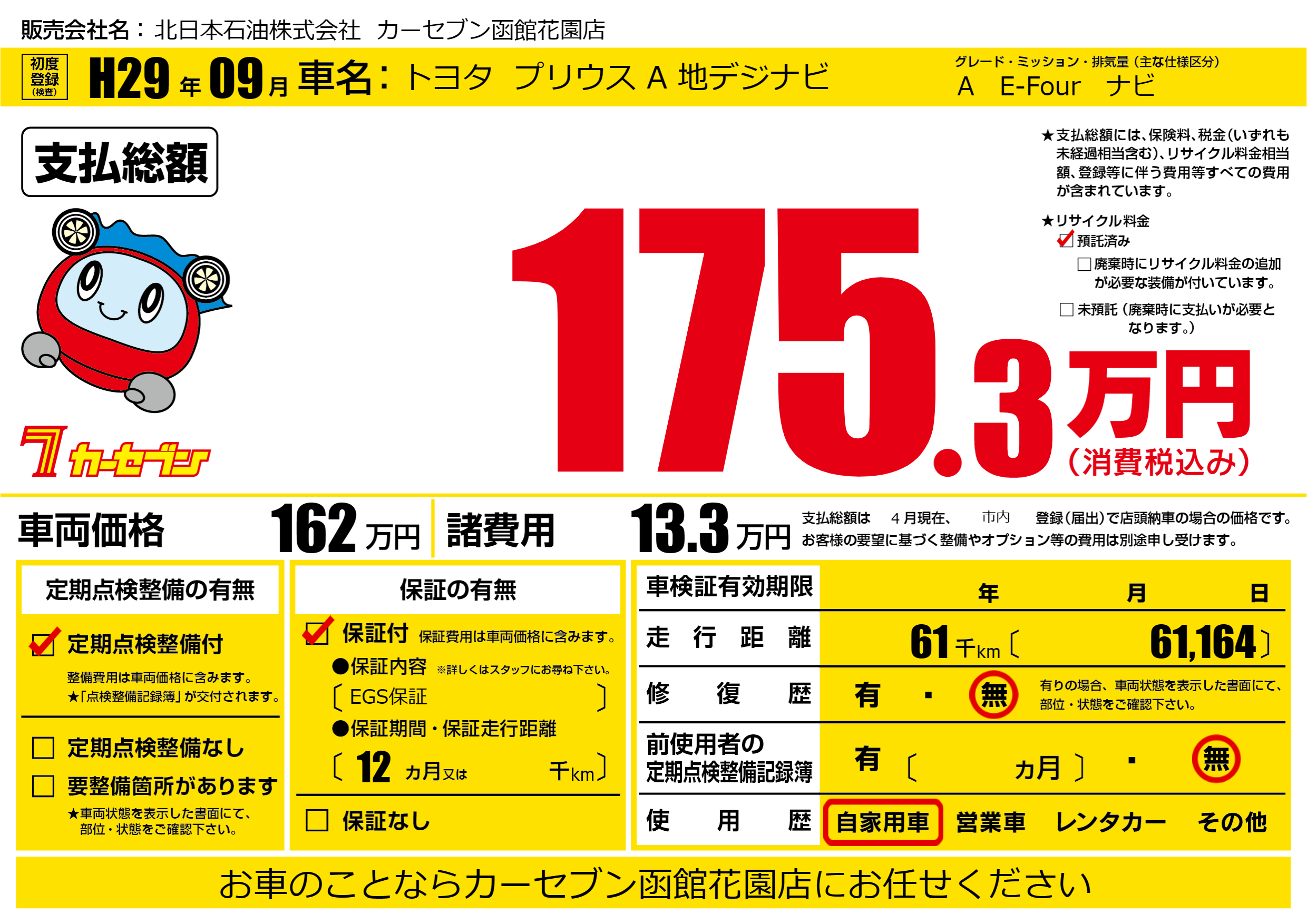 | 定期点検整備 | 定期点検整備あり | ||