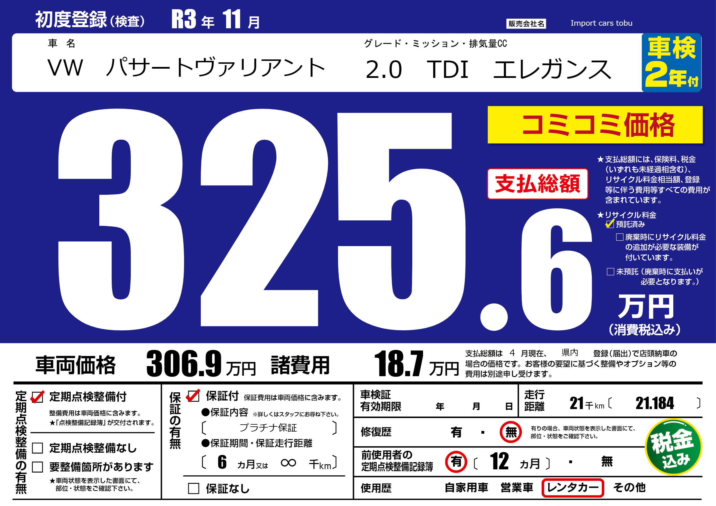 | 定期点検整備 | 定期点検整備あり | ||