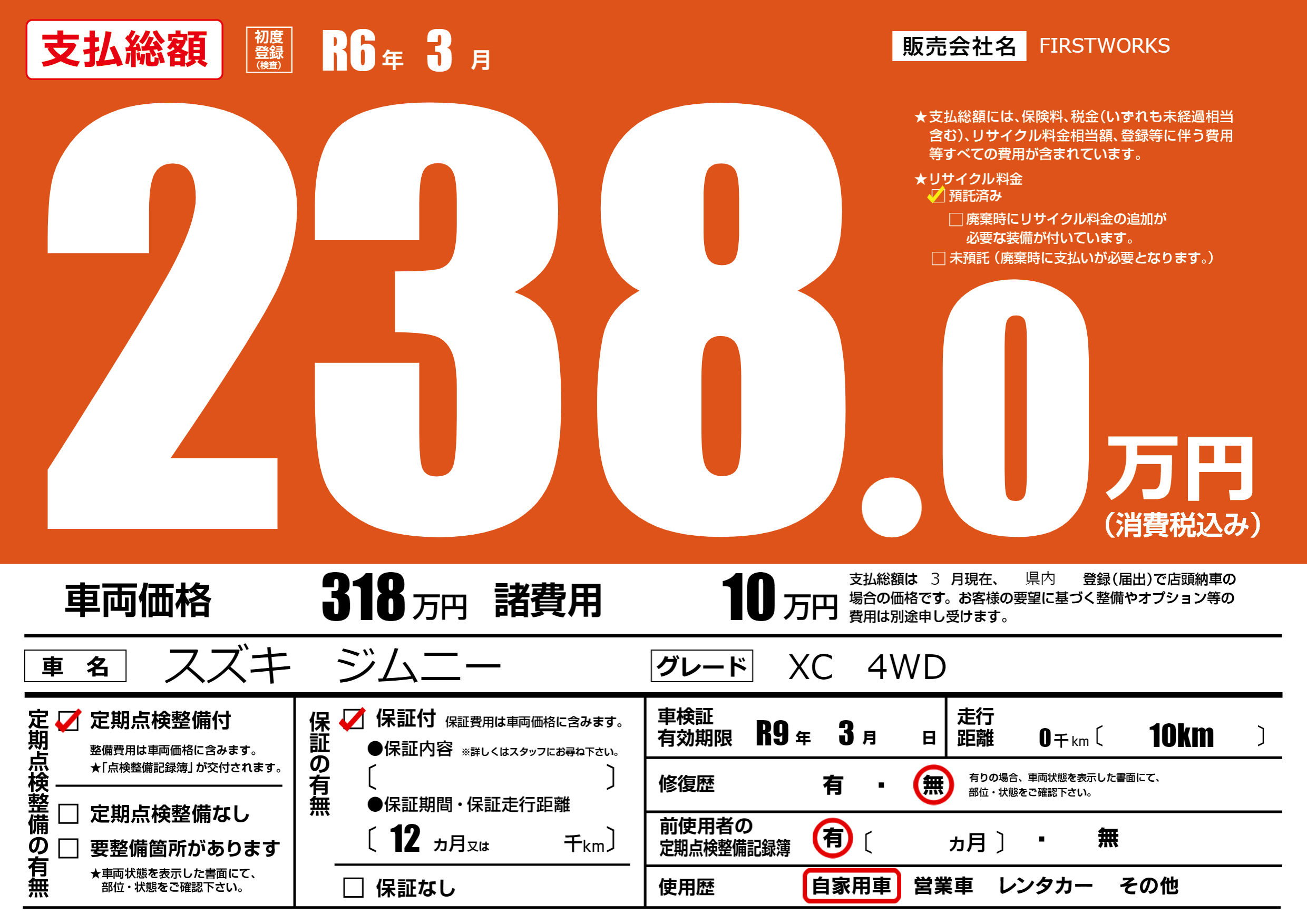 | 車名 | スズキ ジムニー | グレード ミッション 排気量 |