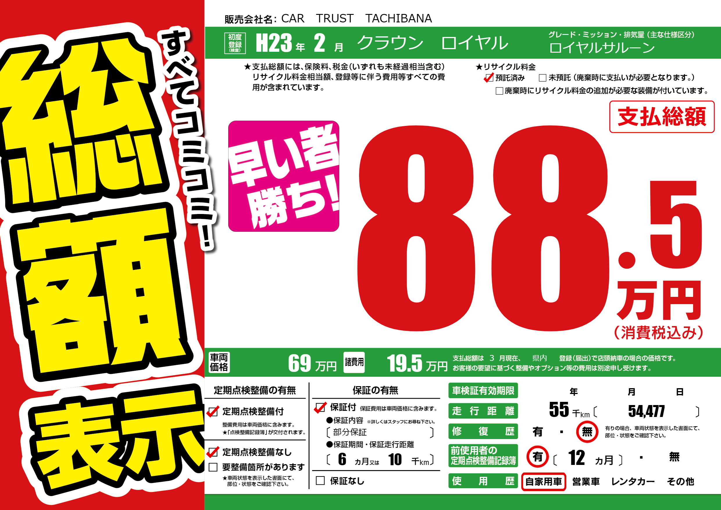| 車名 | クラウン ロイヤル | グレード ミッション 排気量 |
