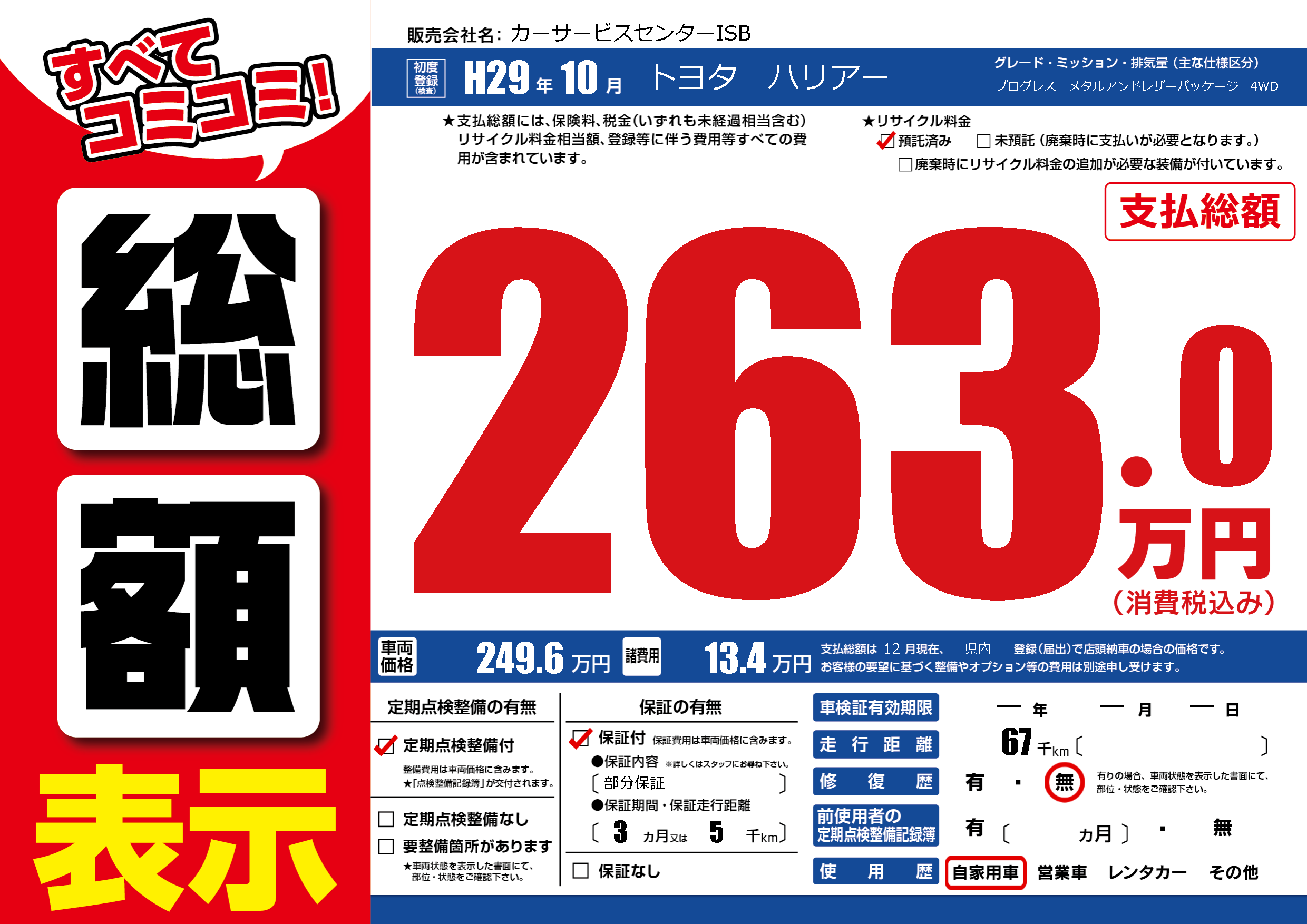 保証付き 保証内容(部分保証) 3ヶ月または(5)千kmまで |