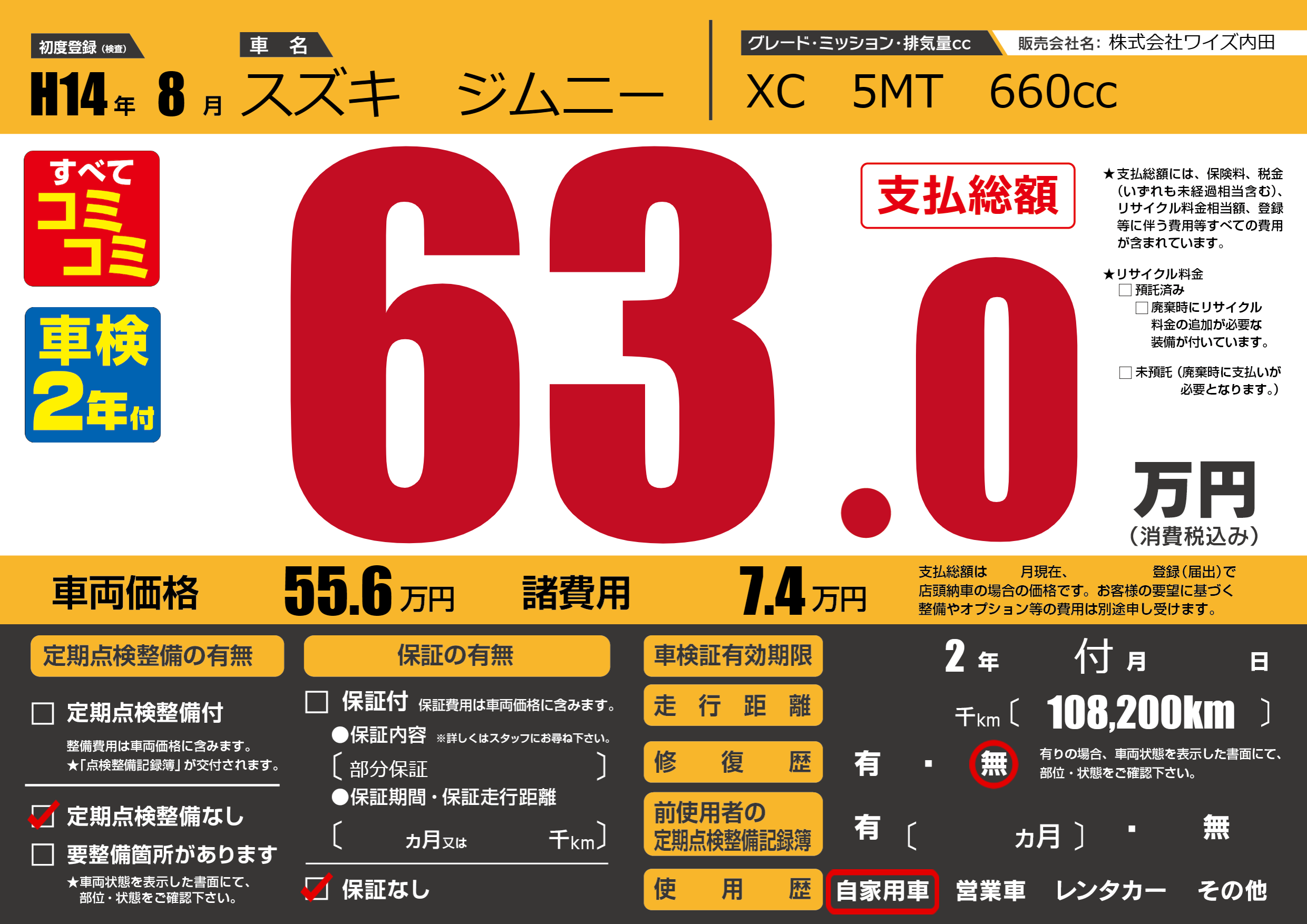 | 走行キロ | - | 初年度登録 | H14年8月 |