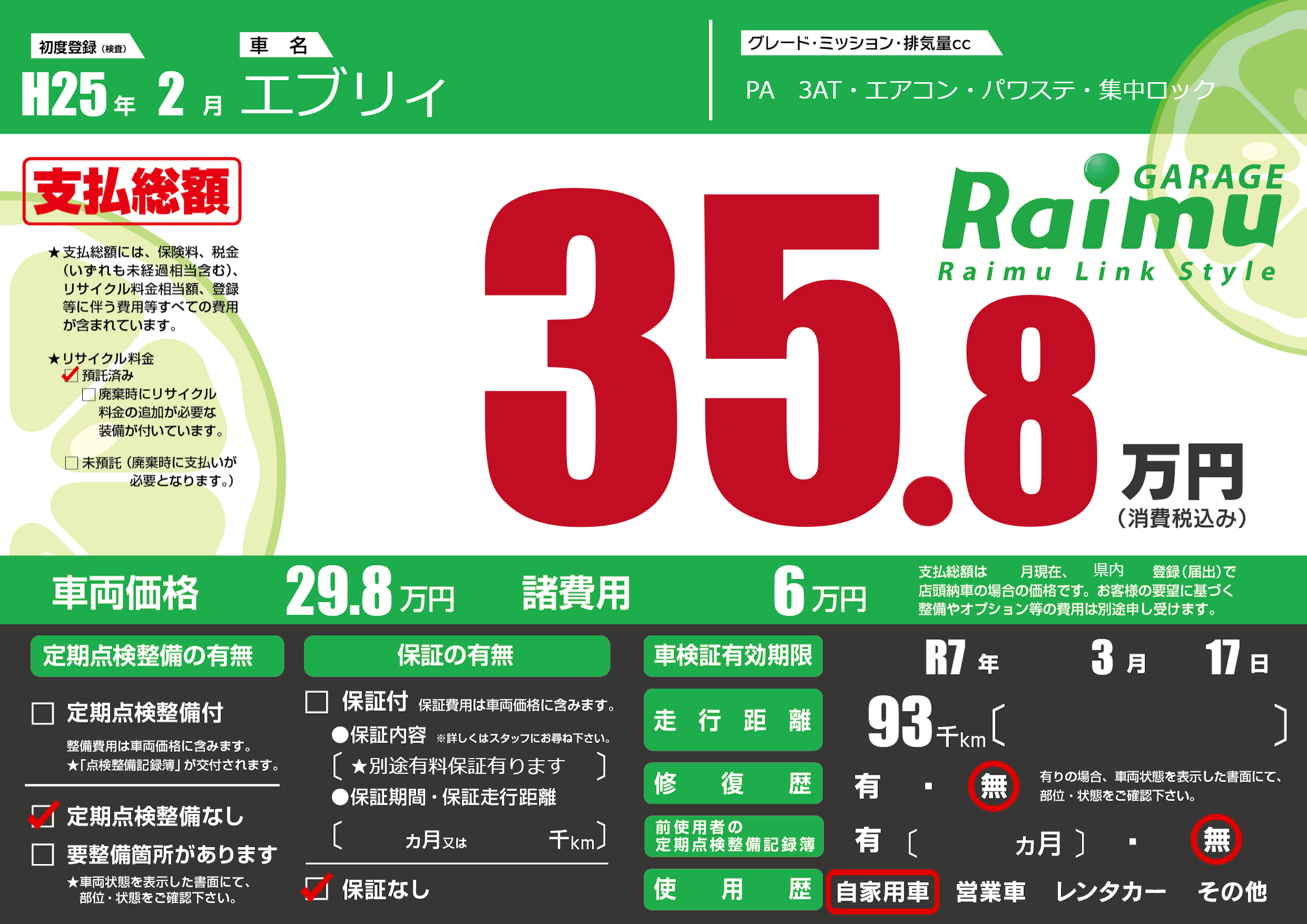 なし | 車検制限 | R7年3月17月 |