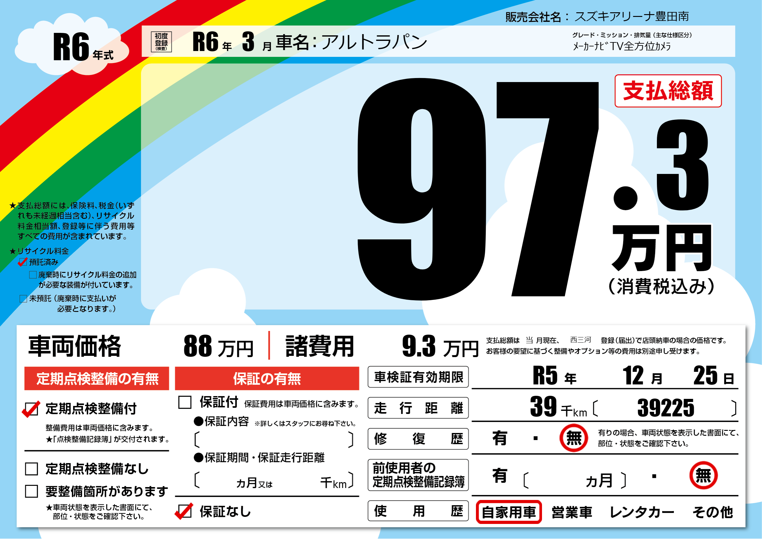 | 走行キロ | 3.9万km | 初年度登録 | R6年3月 |