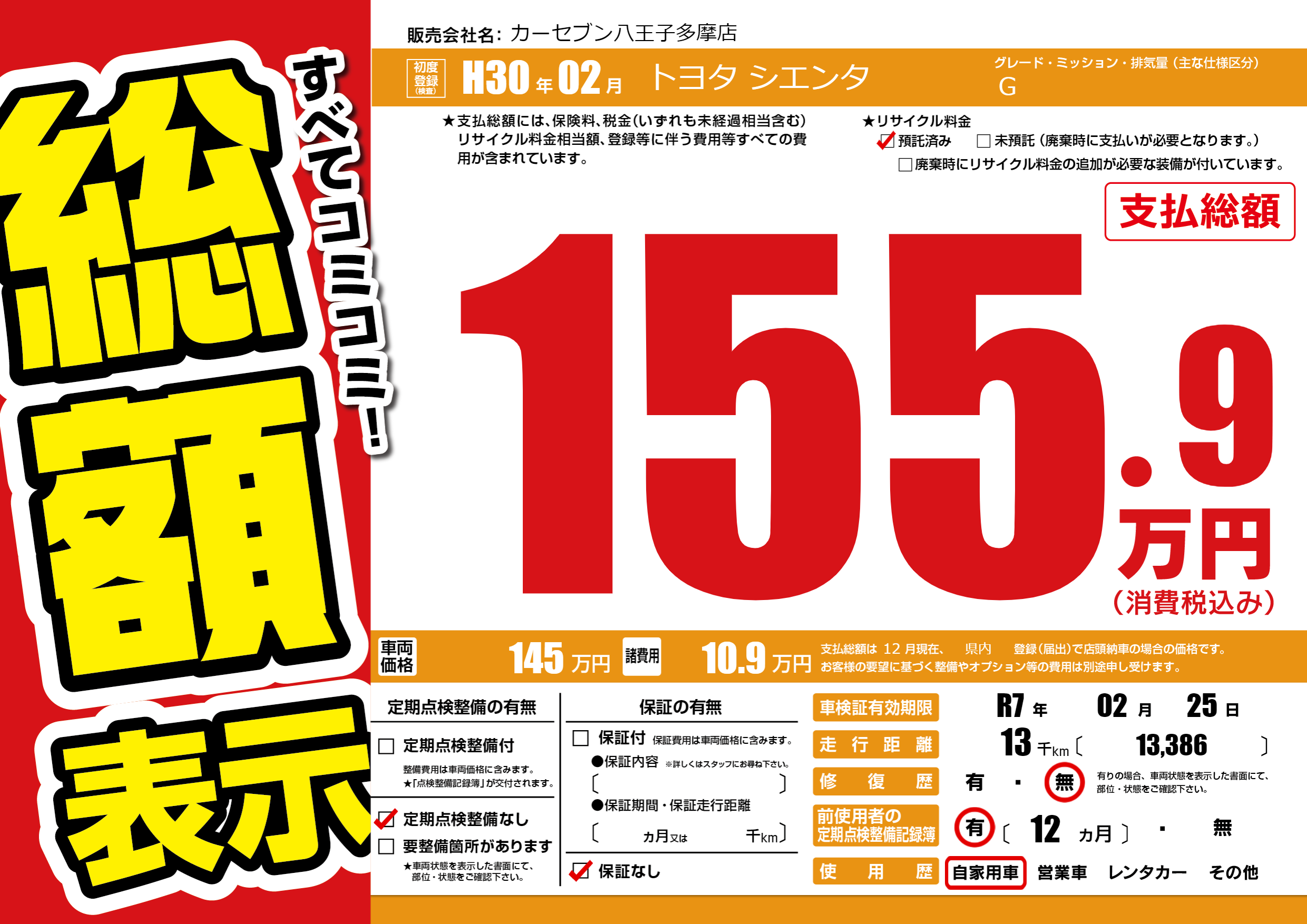 | 車検制限 | R7年 02月 25日 | ||