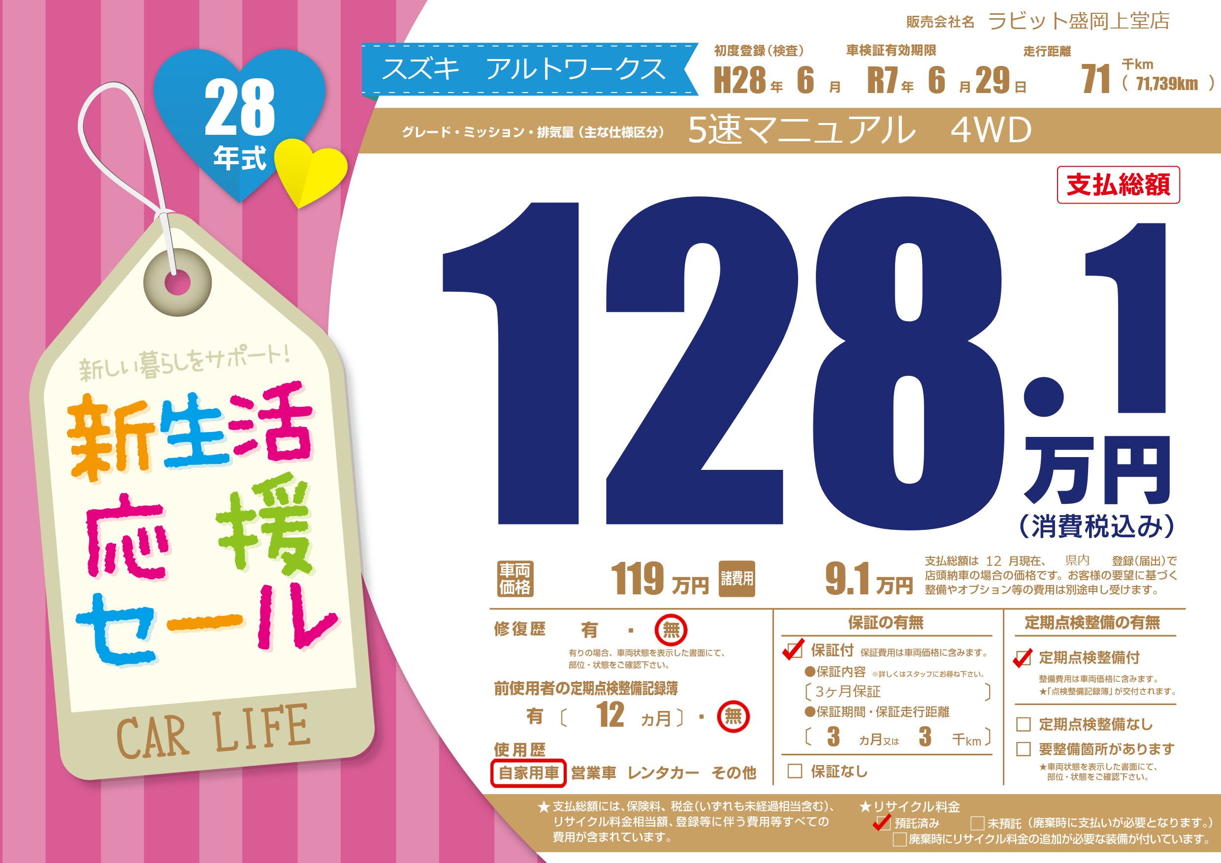 なし | 車検制限 | R7年6月29月 |