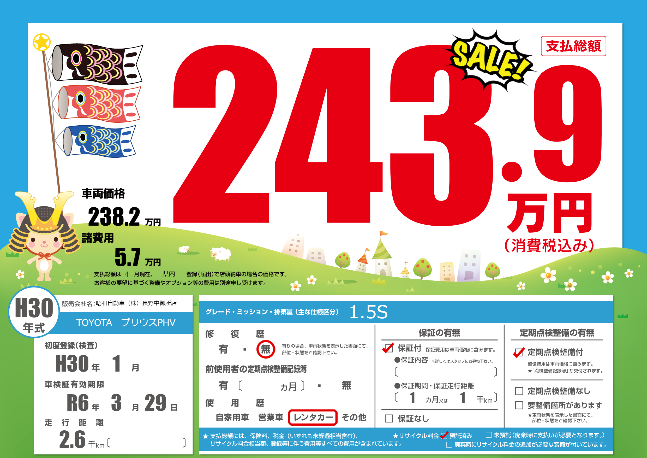 | 車名 | TOYOTA プリウスPHV | グレード ミッション 排気量 |
