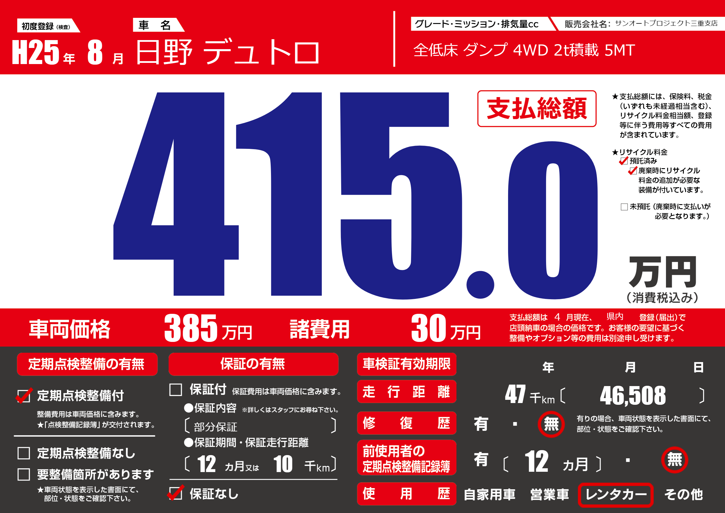 定期点検整備 | 定期点検整備あり |