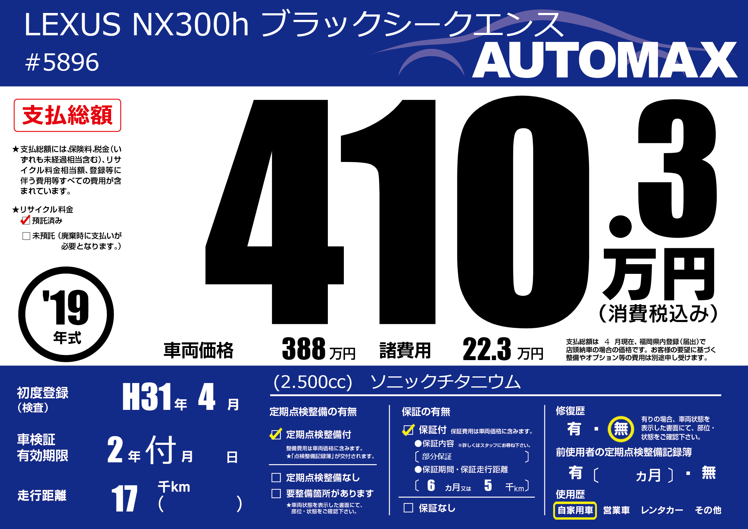 | 定期点検整備 | 定期点検整備あり | ||