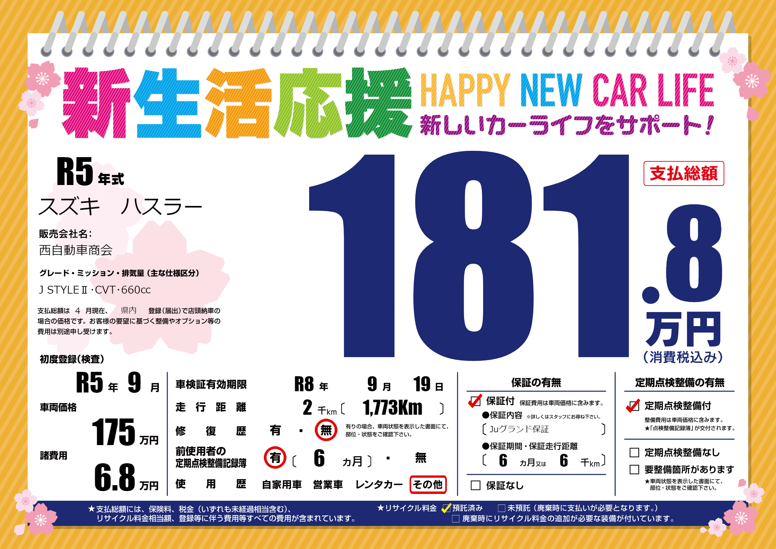 なし | 車検制限 | R8年9月19月 |