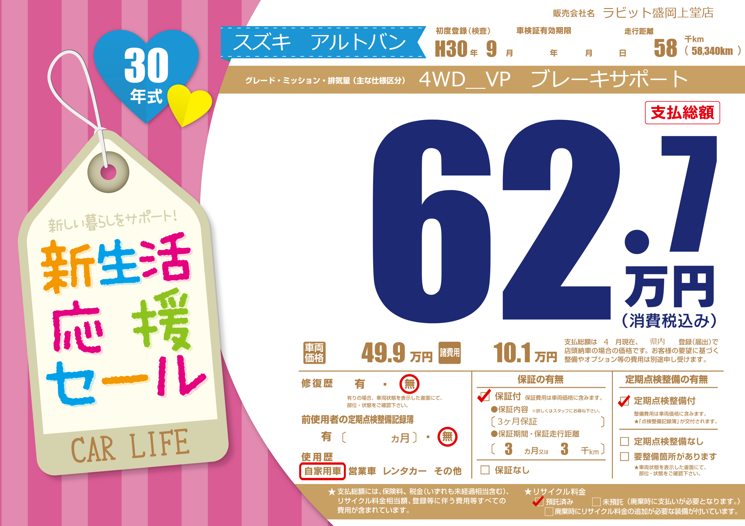 | 車名 | スズキ アルトバン | グレード ミッション 排気量 |