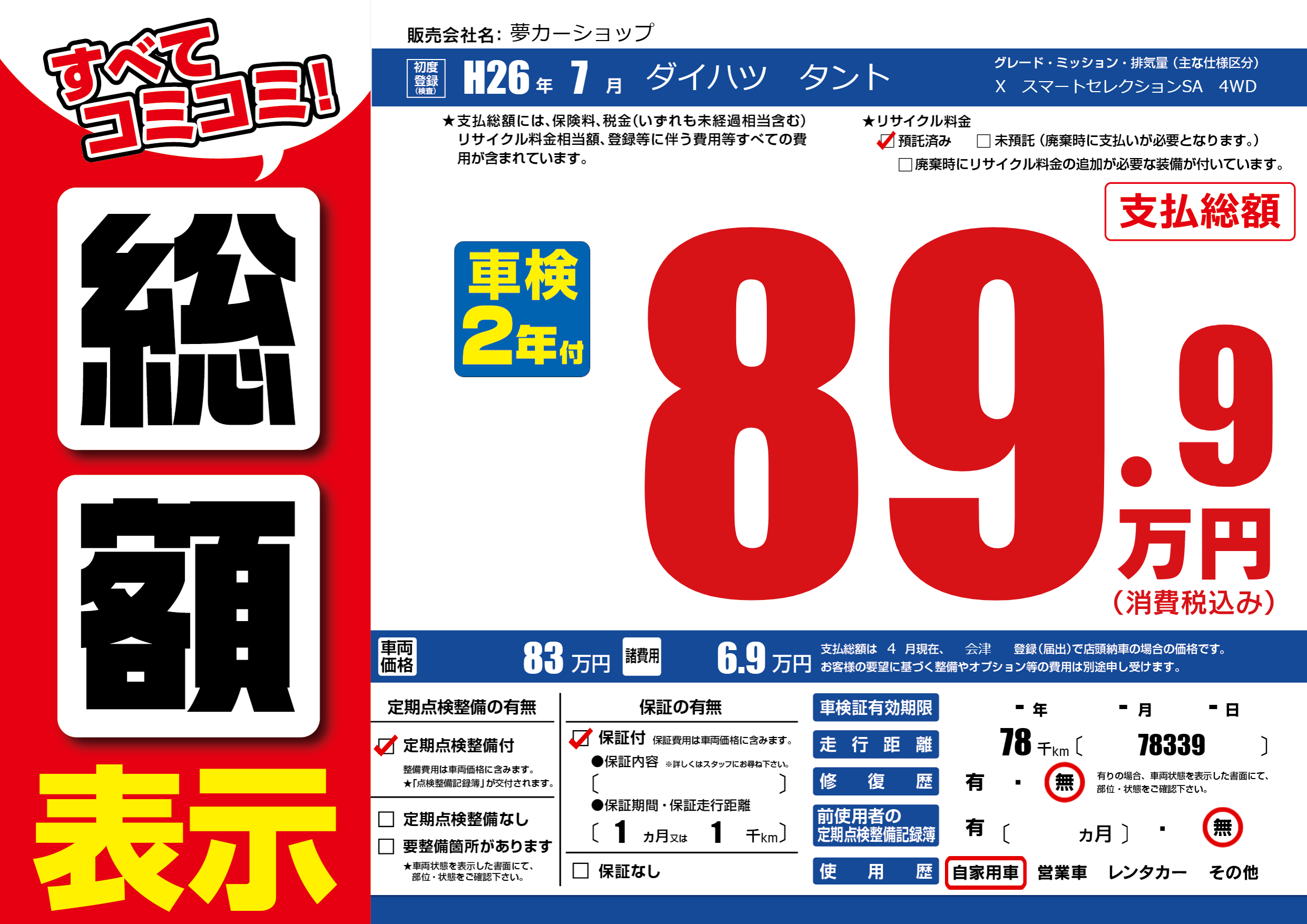 | 走行キロ | 7.8万km | ||