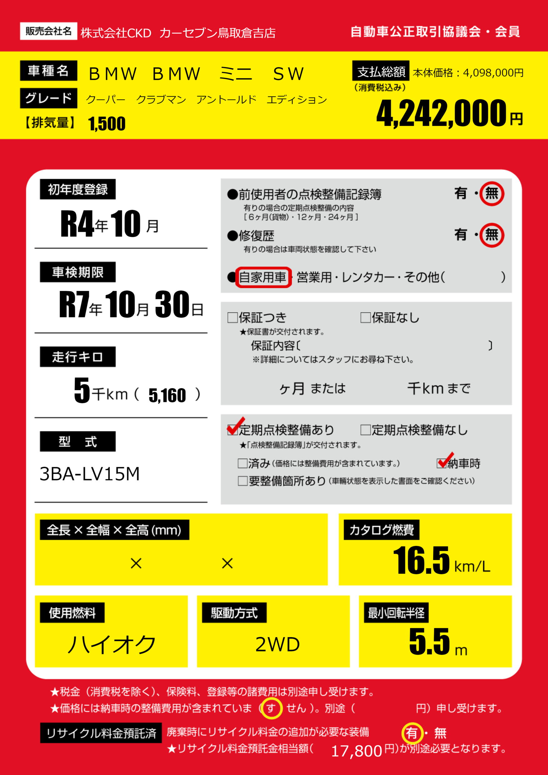 | 初年度登録 | R4年10月 | ||