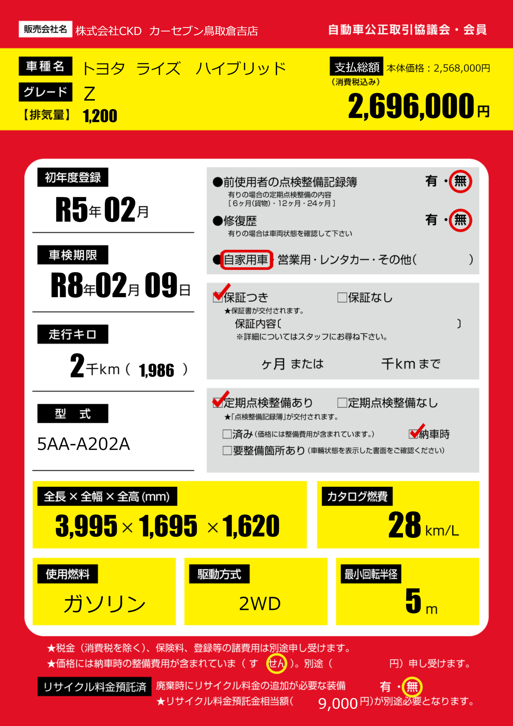 なし | 車検制限 | R8年02月09月 |
