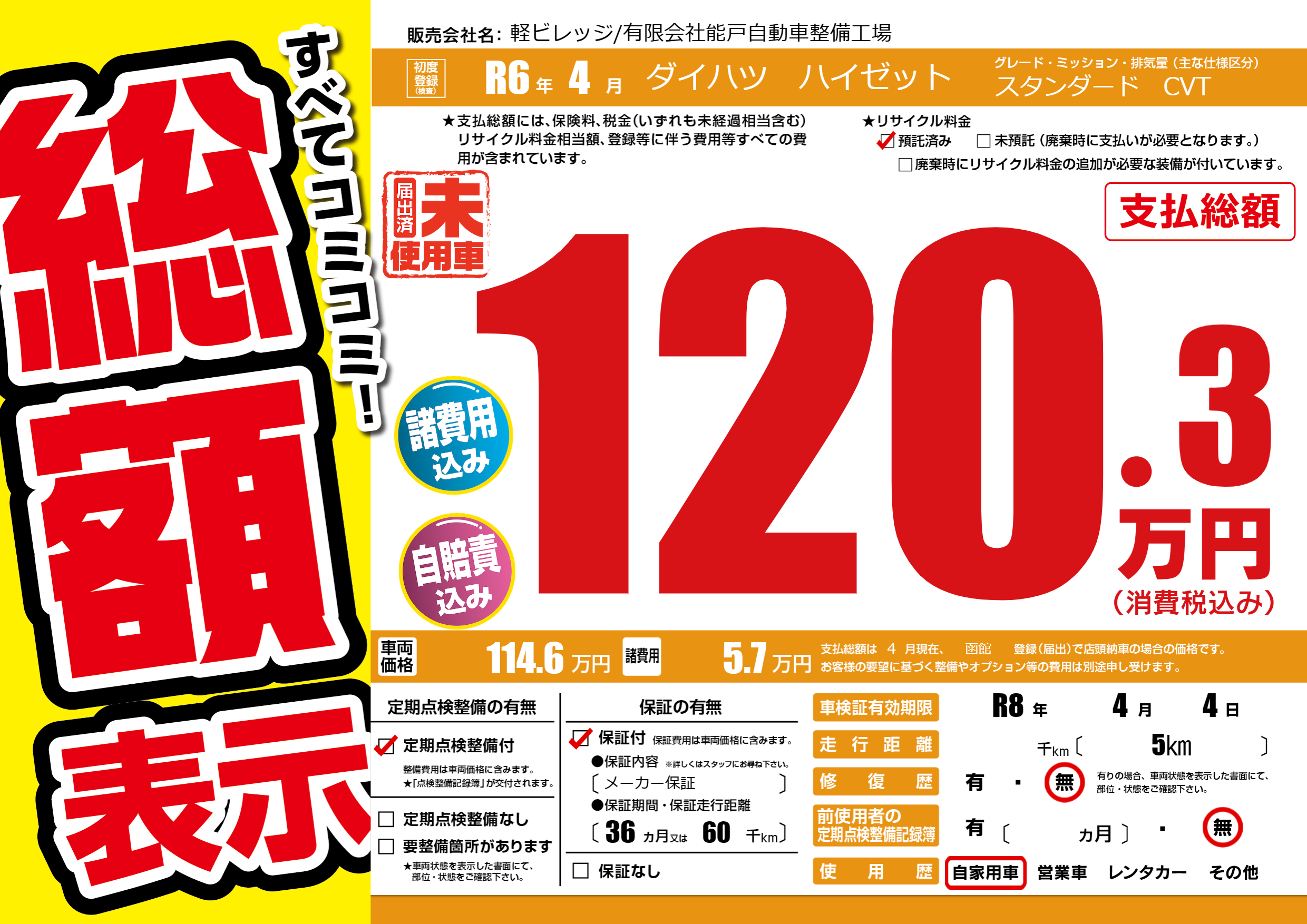 | 走行キロ | - | 初年度登録 | R6年4月 |