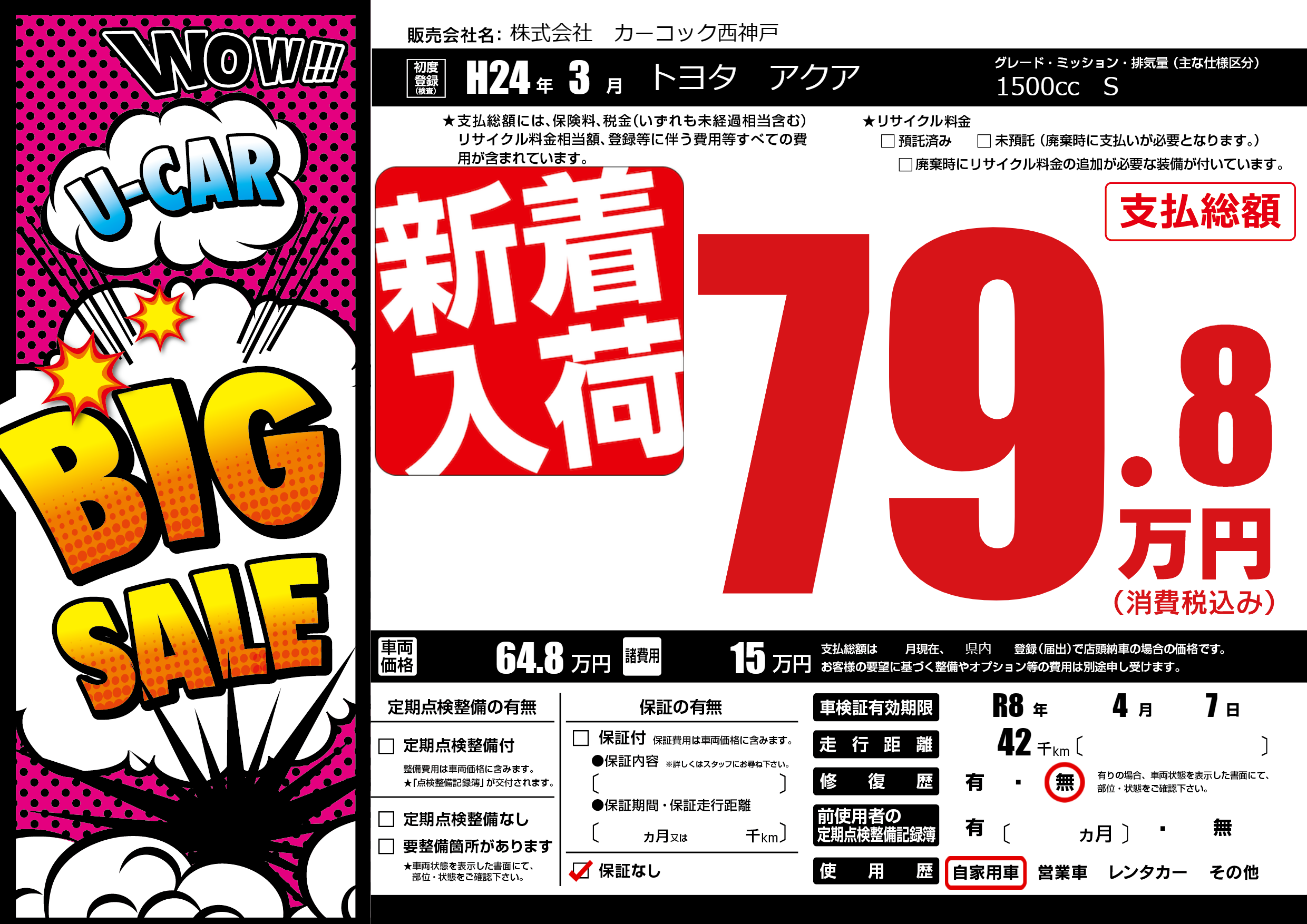 なし | 車検制限 | R8年4月7月 |