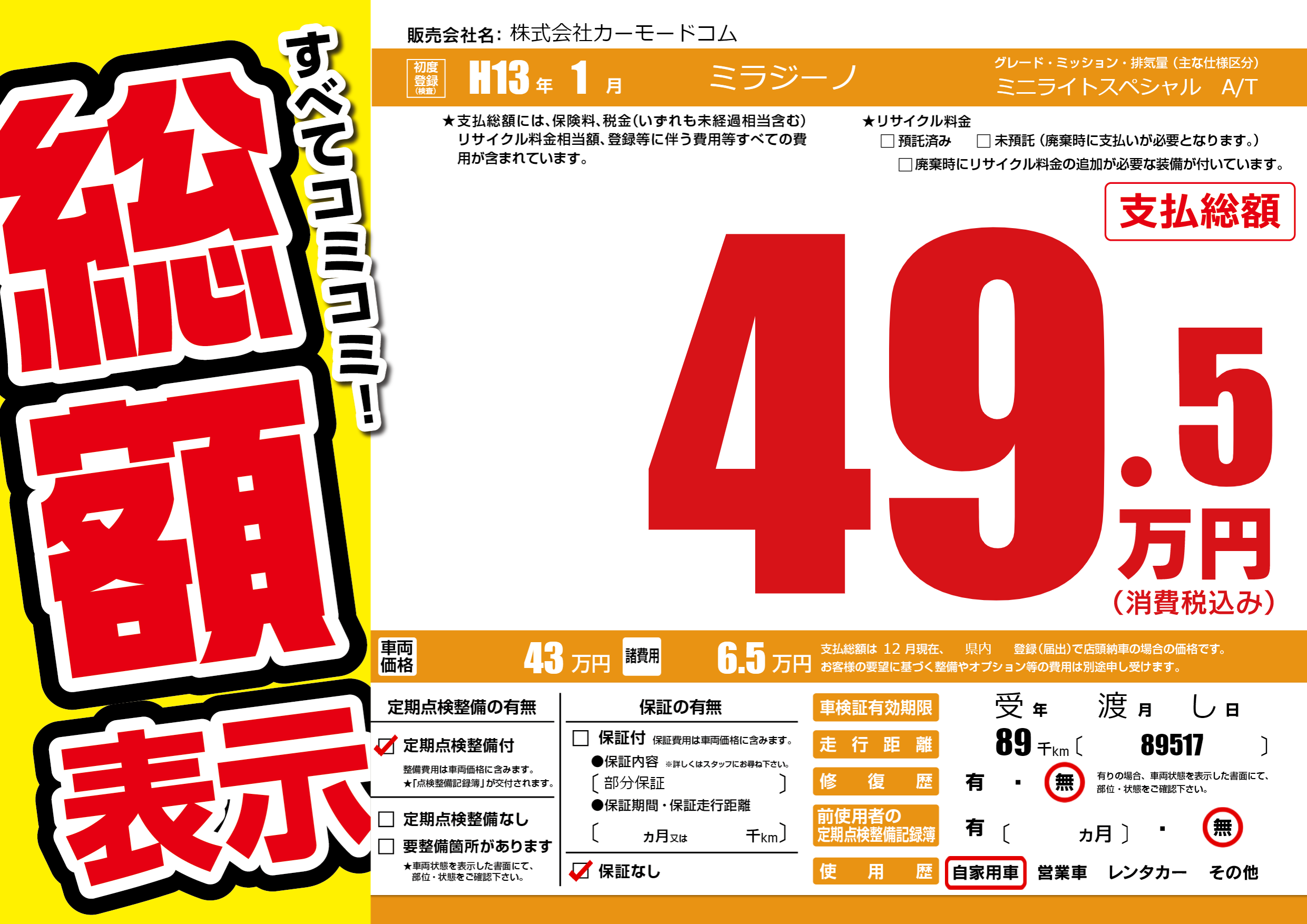 | 定期点検整備 | 定期点検整備あり | ||