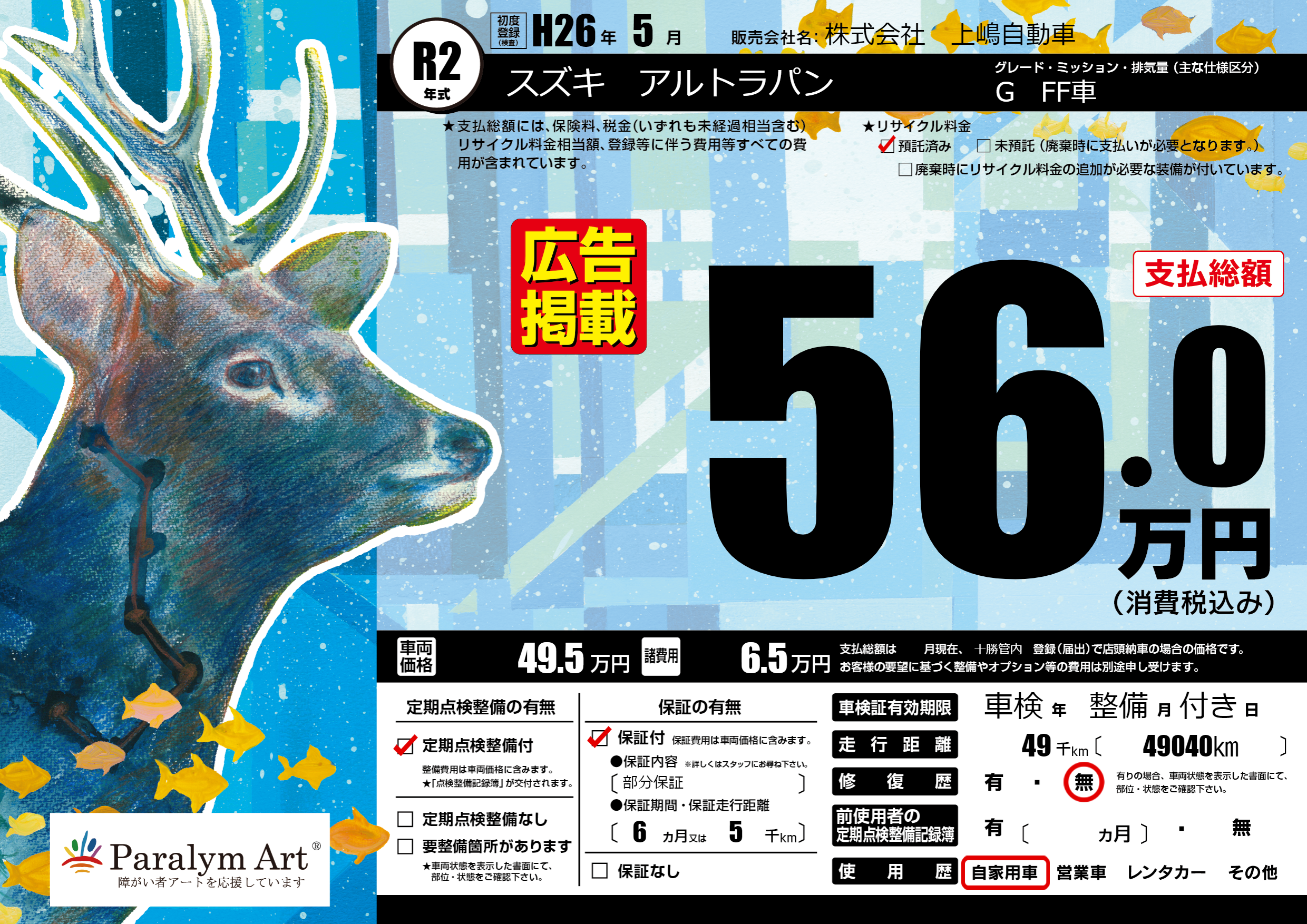 | 走行キロ | 4.9万km | 初年度登録 | H26年5月 |